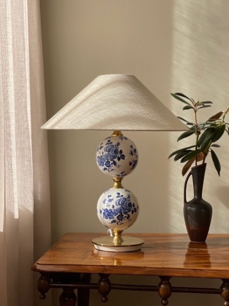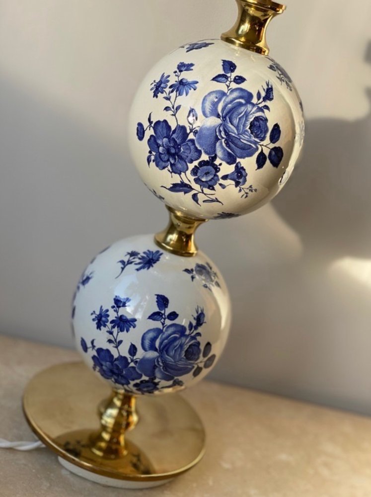 Large Table Lamp in Glass, White & Blue from Stilarmatur, 1960s