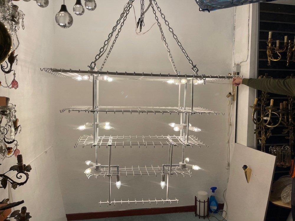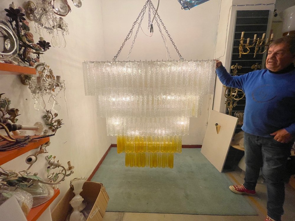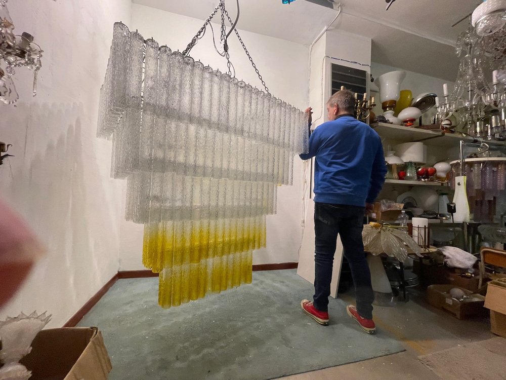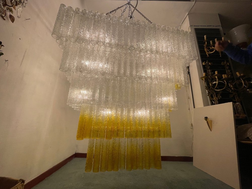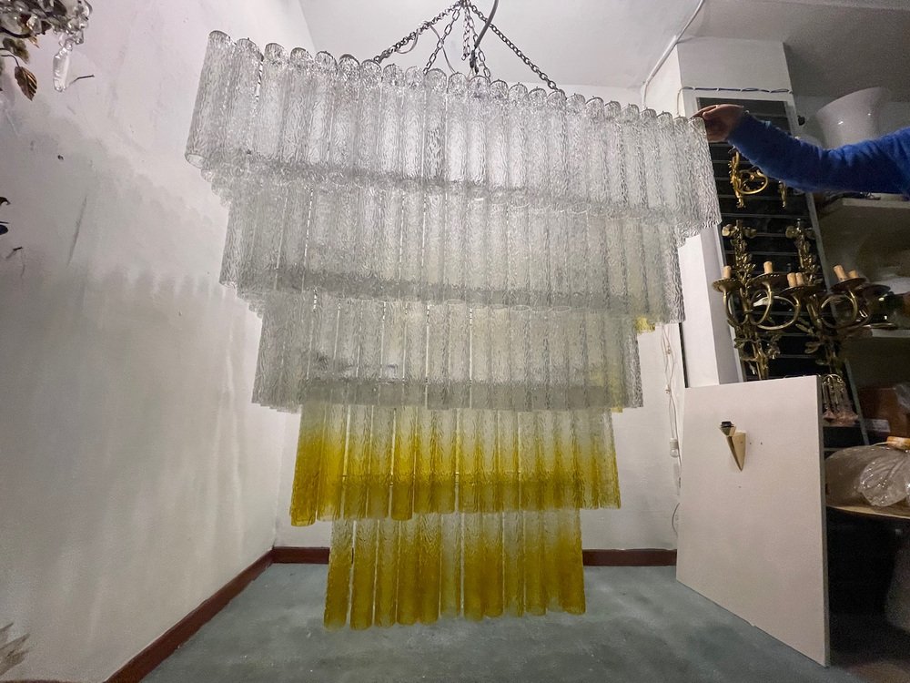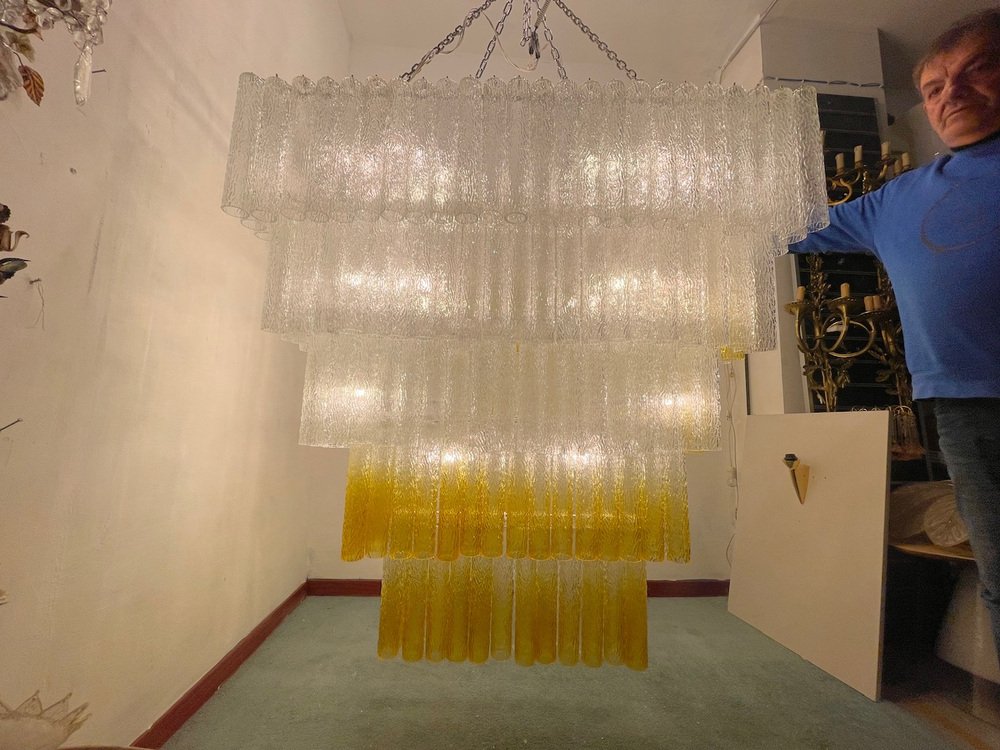 Large Textured Glass Chandelier, 1980s