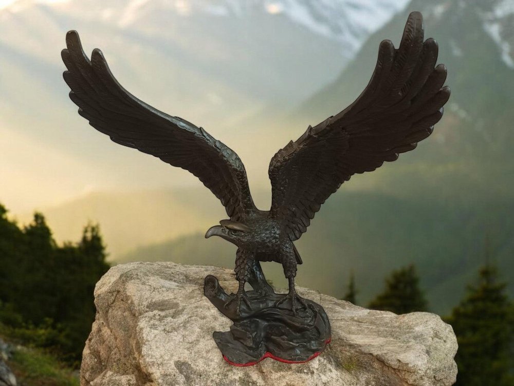 Large Vintage Bronze Sculpture of Golden Eagle Bird of Prey, 1960