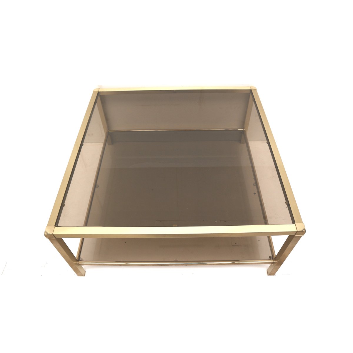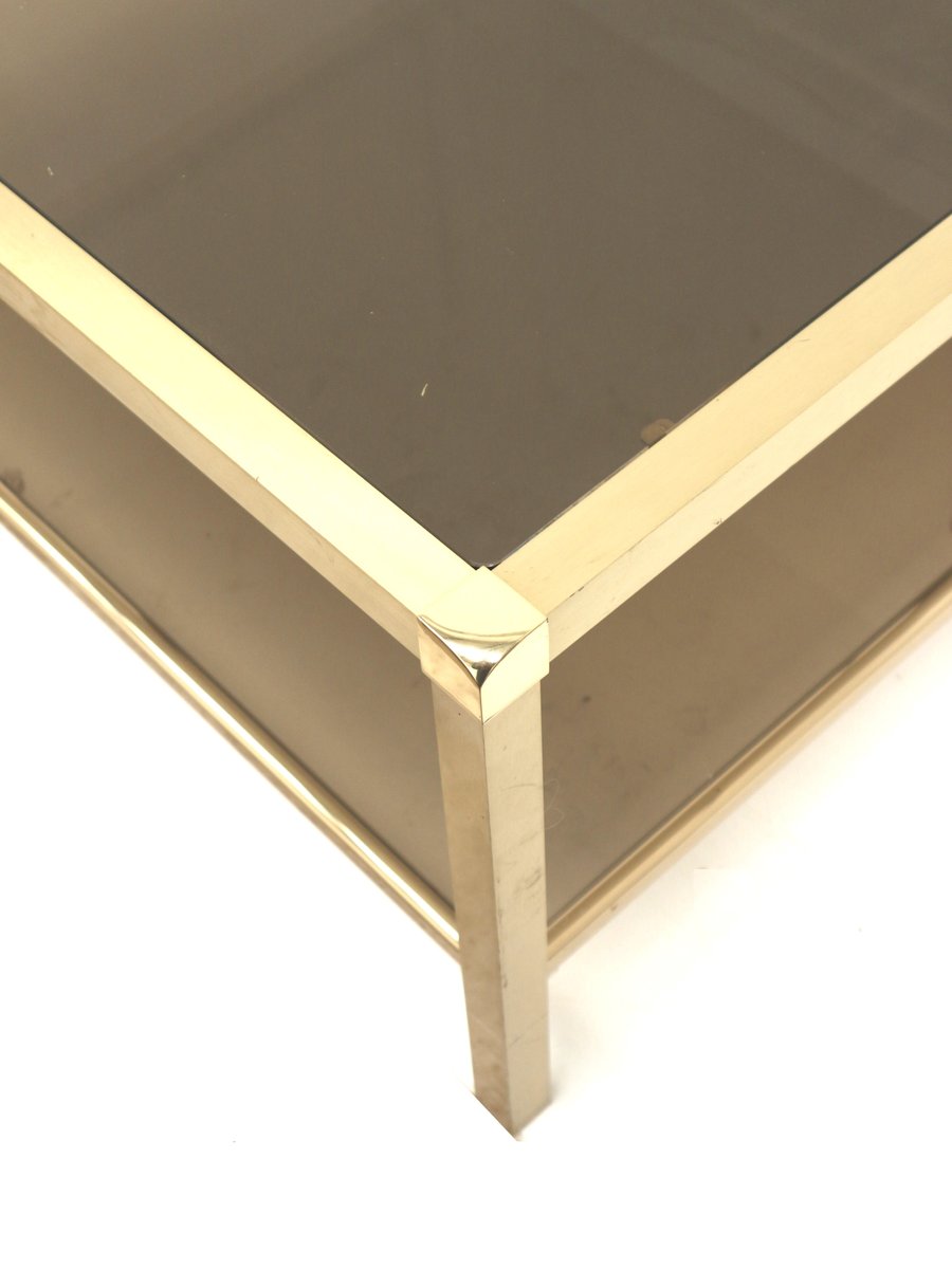 Large Vintage Hollywood Regency Coffee Table in Brass and Smoked Glass, 1970s