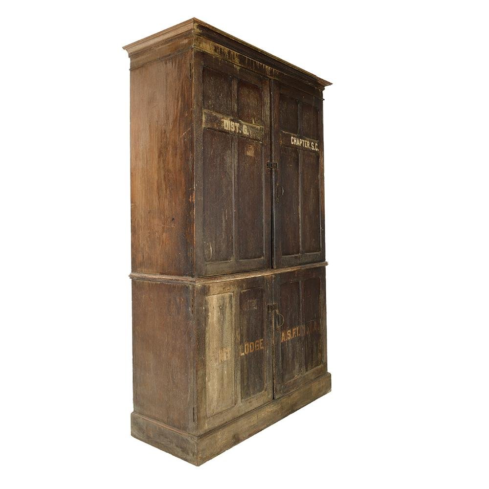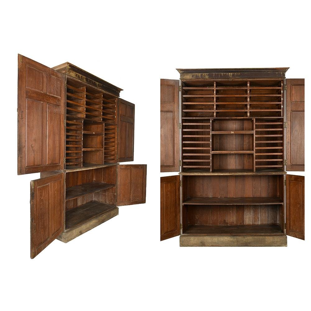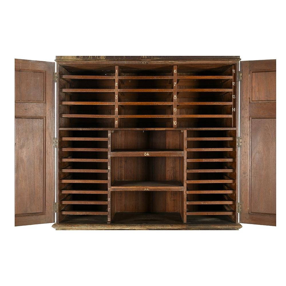 Large Vintage Patinated Wood Postal Cabinet