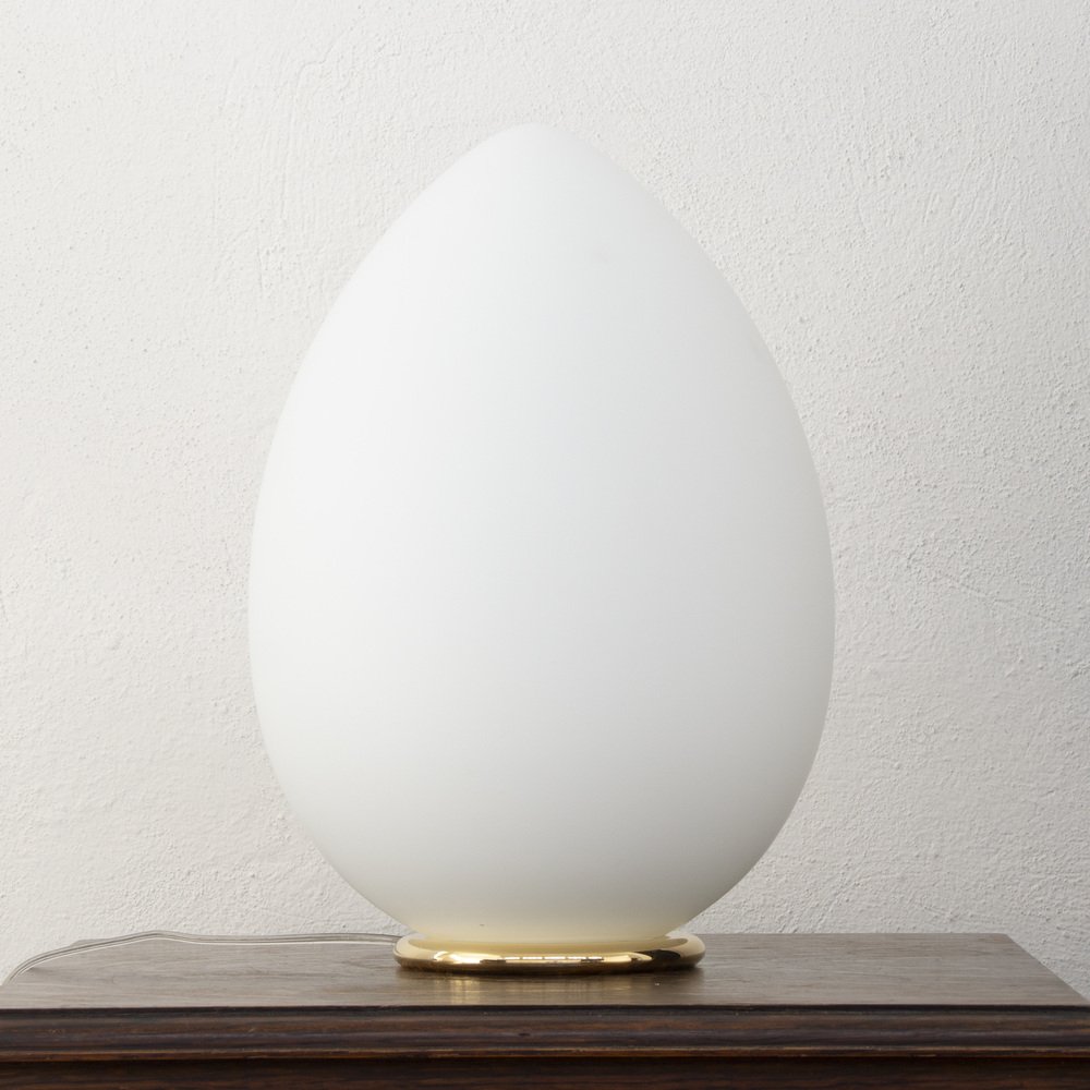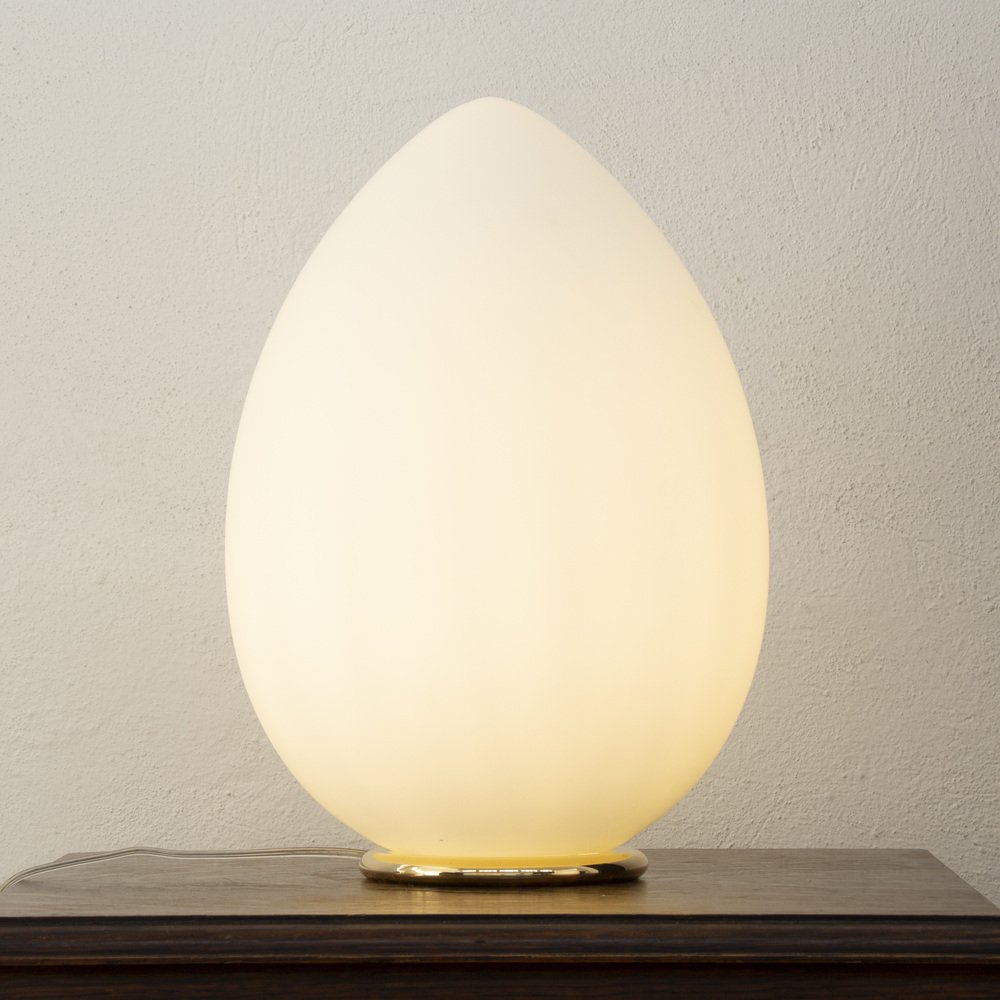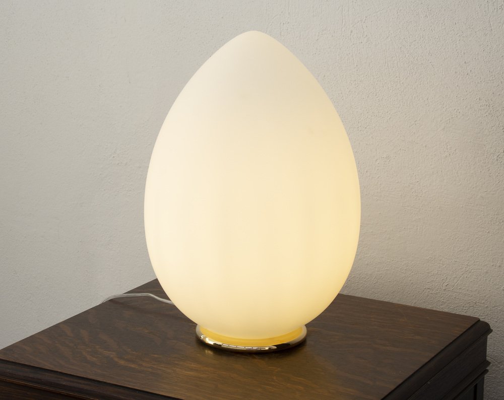 Large Vintage Table Lamp in Satin White Murano Glass Shape Form, Italy