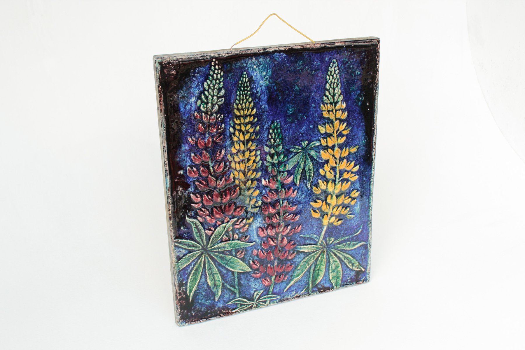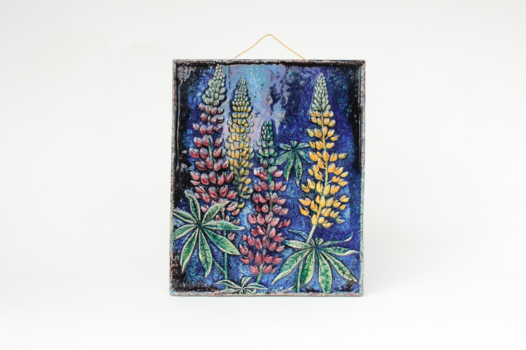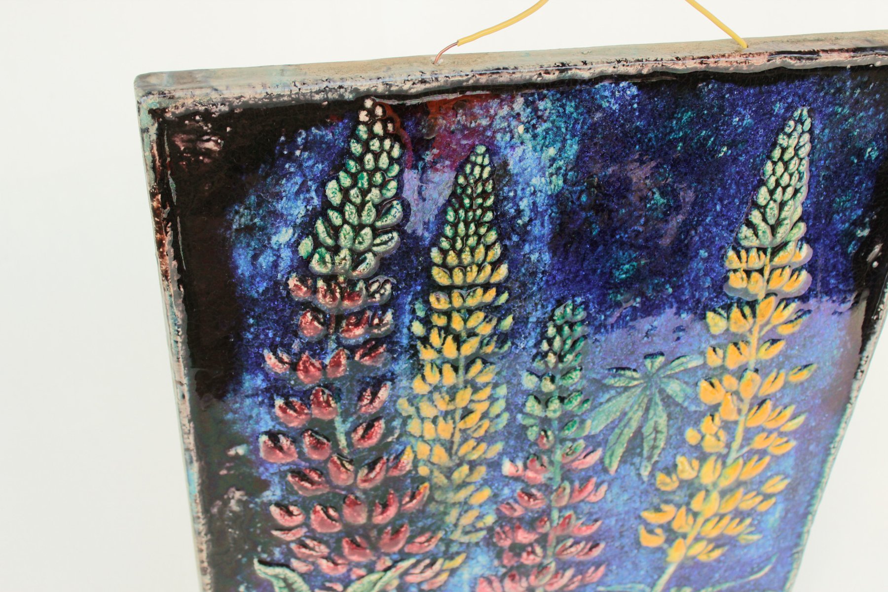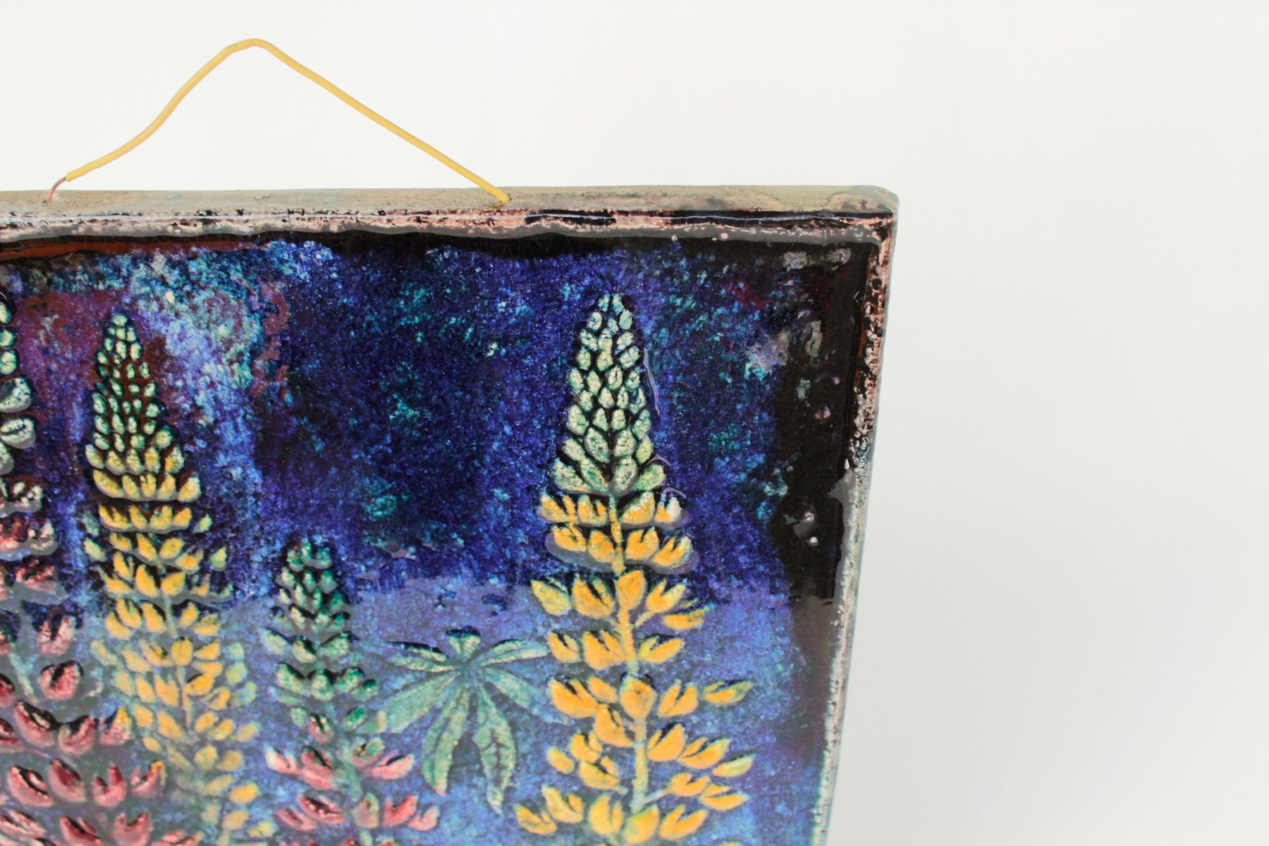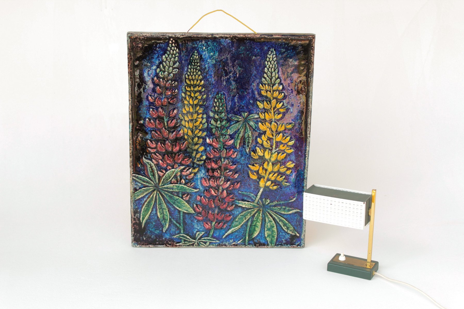 Large Wall Ceramic by Karlsruhe Majolika, Lupine and Lupine, 1960s
