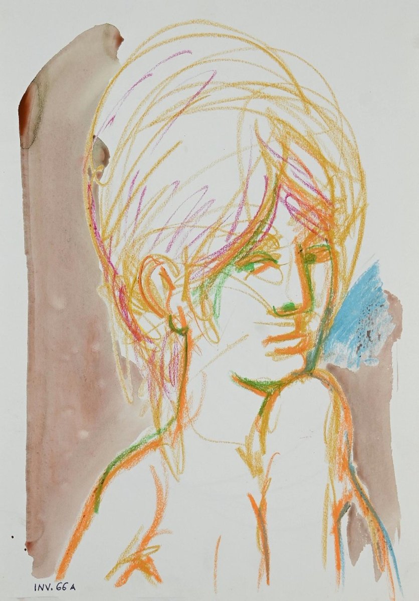 Leo Guida, Female Portrait, Pastel and Watercolor, 1960s