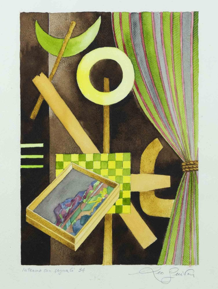 Leo Guida, Interno con segnali 34, Watercolor on Paper, 1970s