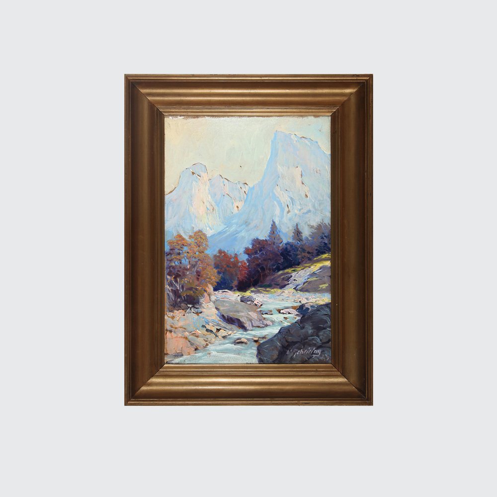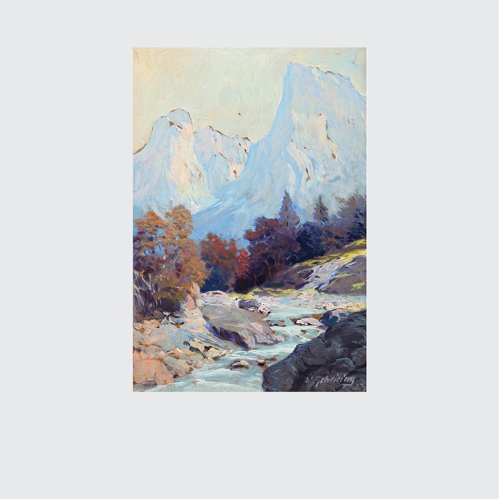 Leopold Scheiring, Landscape, 1920s, Oil on Cardboard