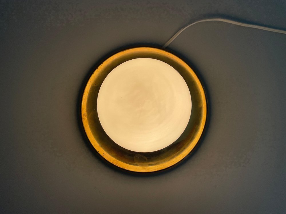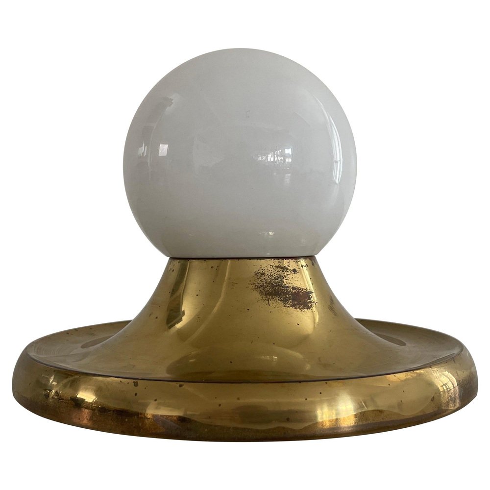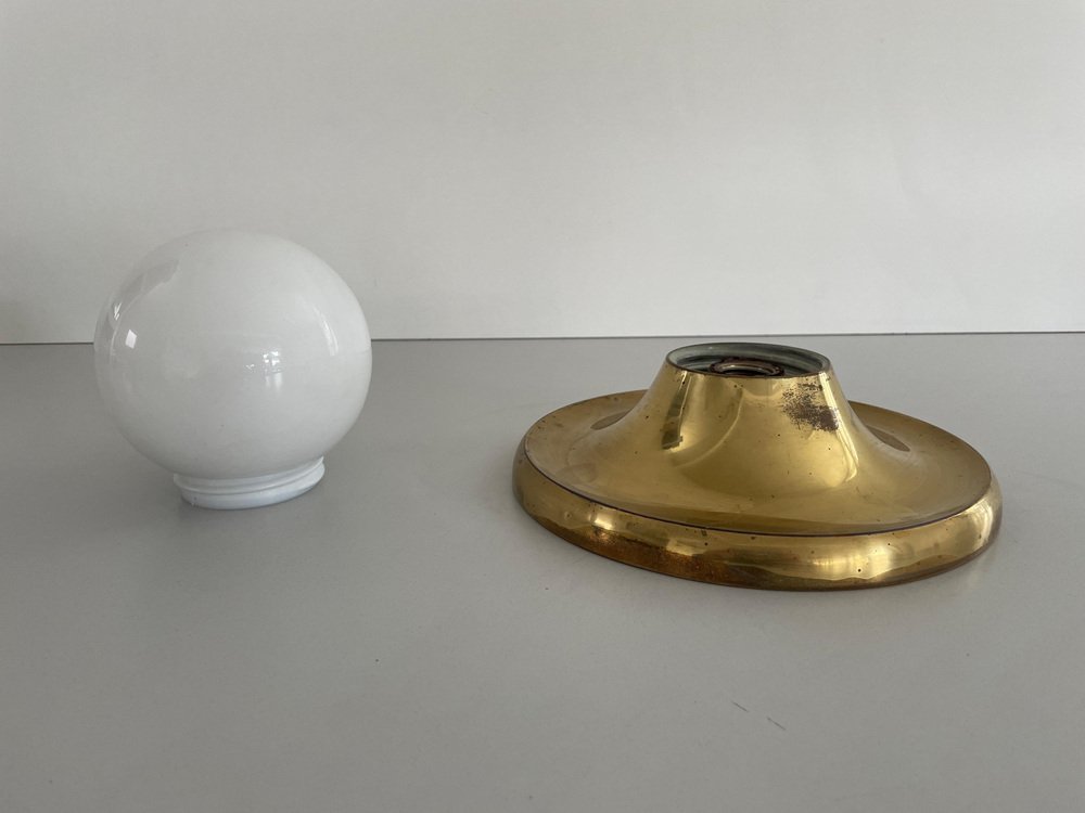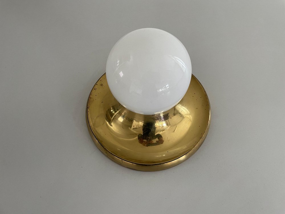 Opal Glass and Gold Metal Pyramid Sconce or Ceiling Lamp, Germany, 1970s