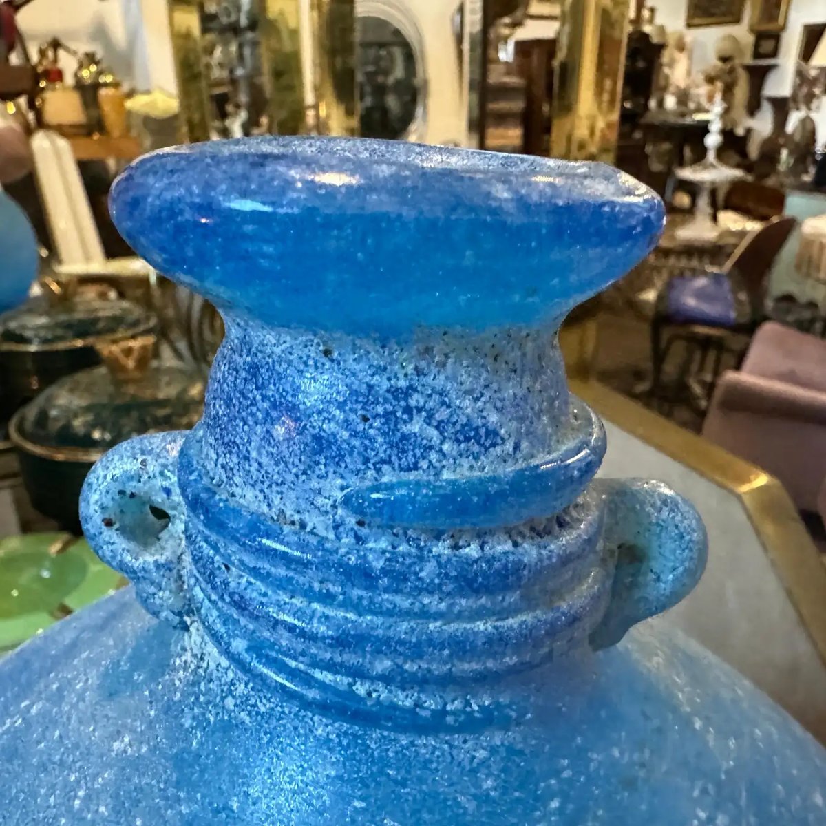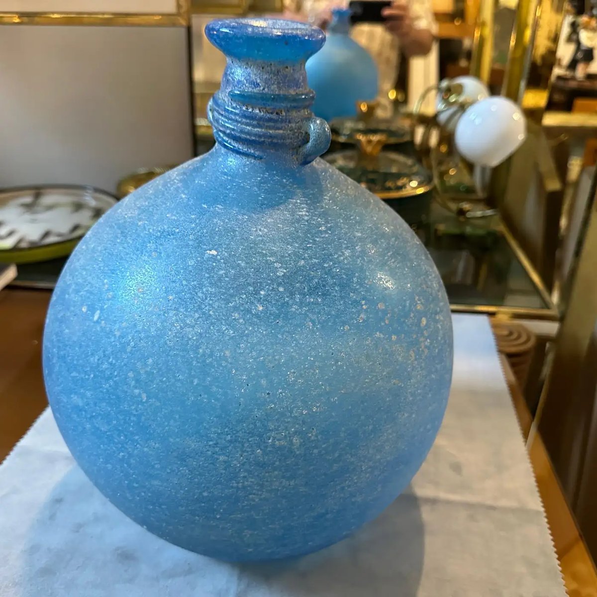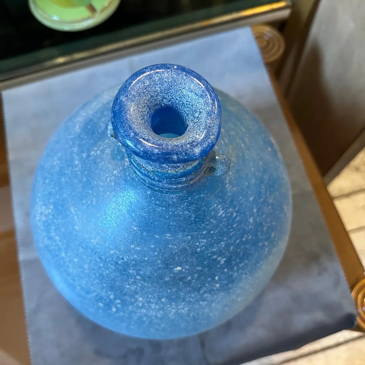 Light Blue Scavo Murano Glass Vase attributed to Cenedese, 1960s