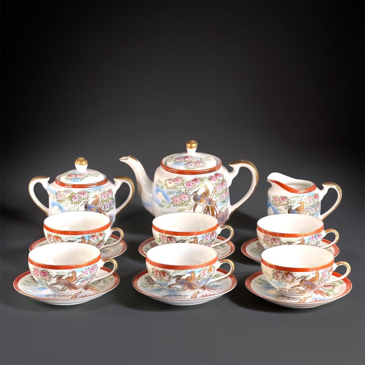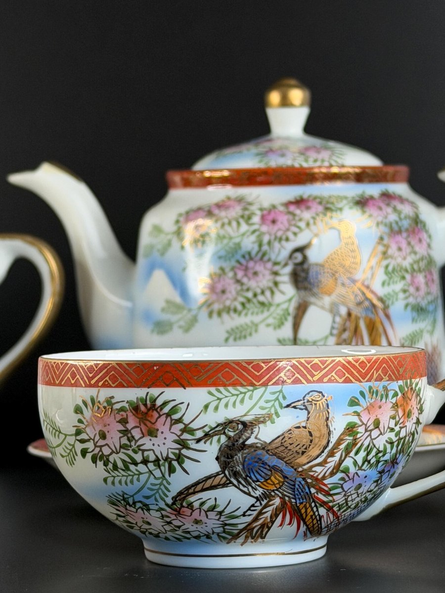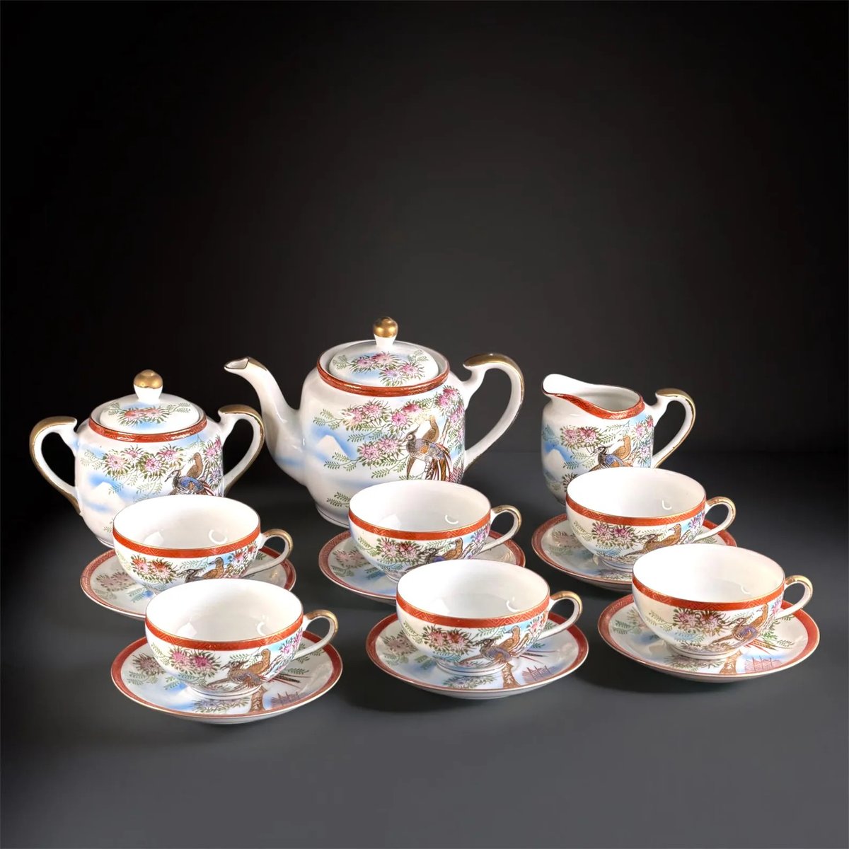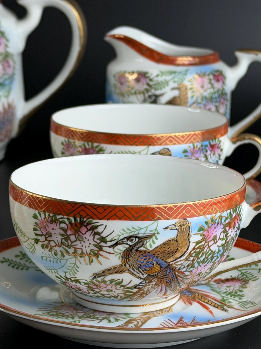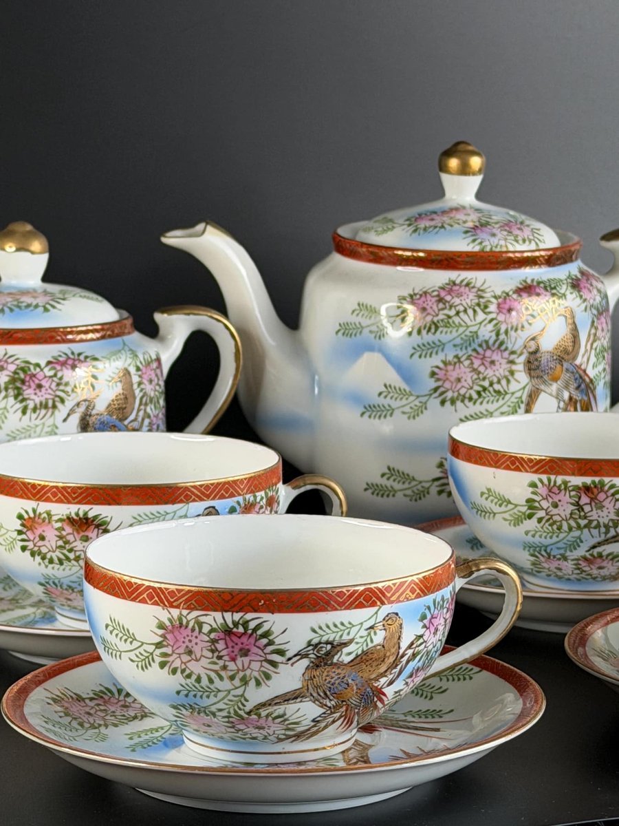 Lithophane Geisha Tea Set for Six from Kutani, 1940s, Set of 15