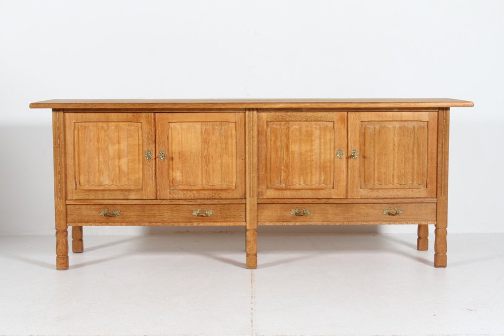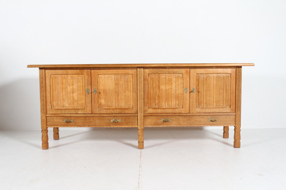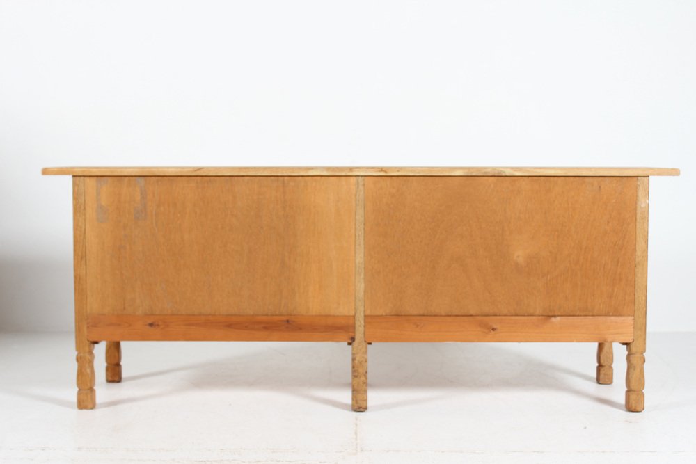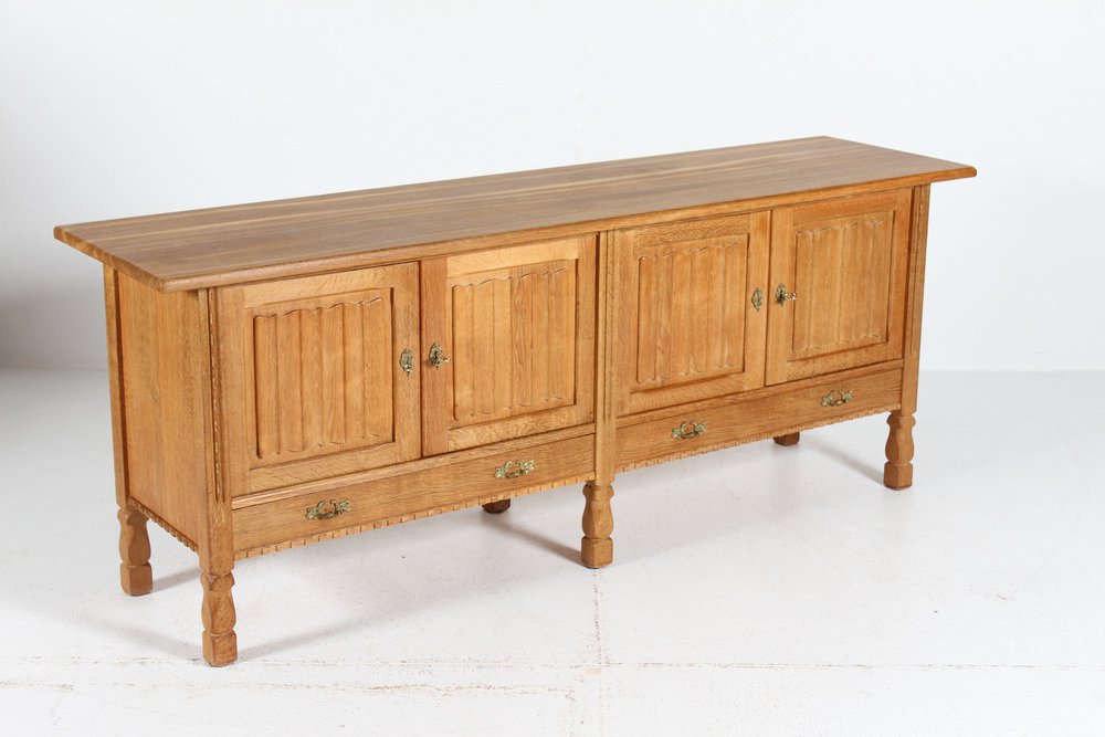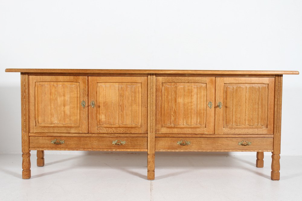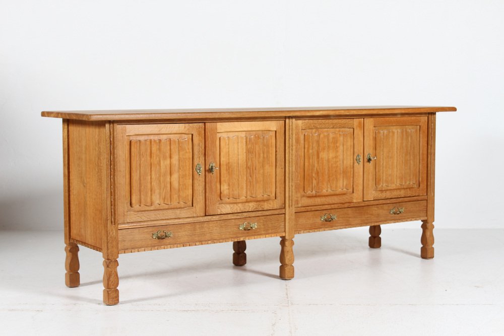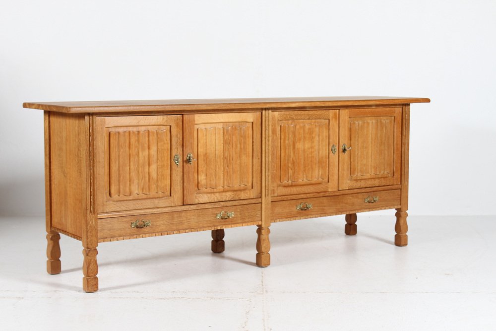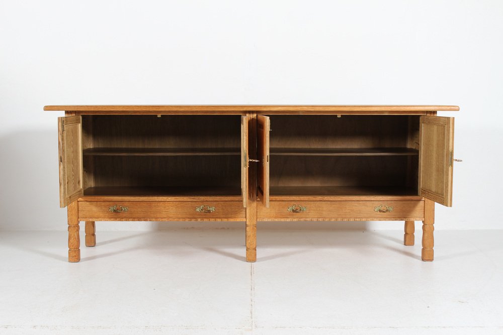 Long Brutalist Danish Oak Sideboard with 4 Doors attributed to Henning Kjærnulf, 1970s