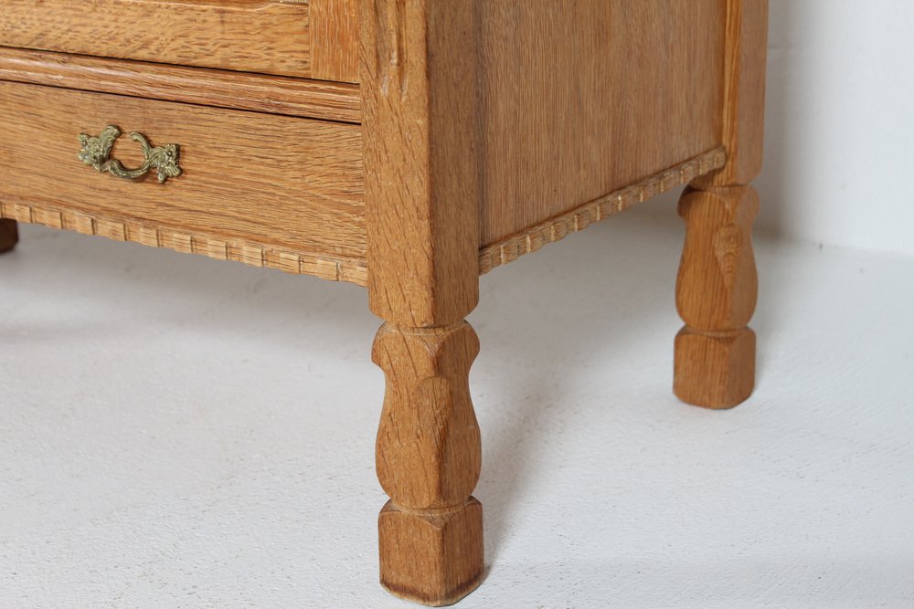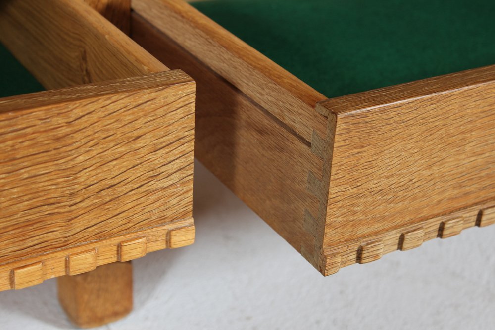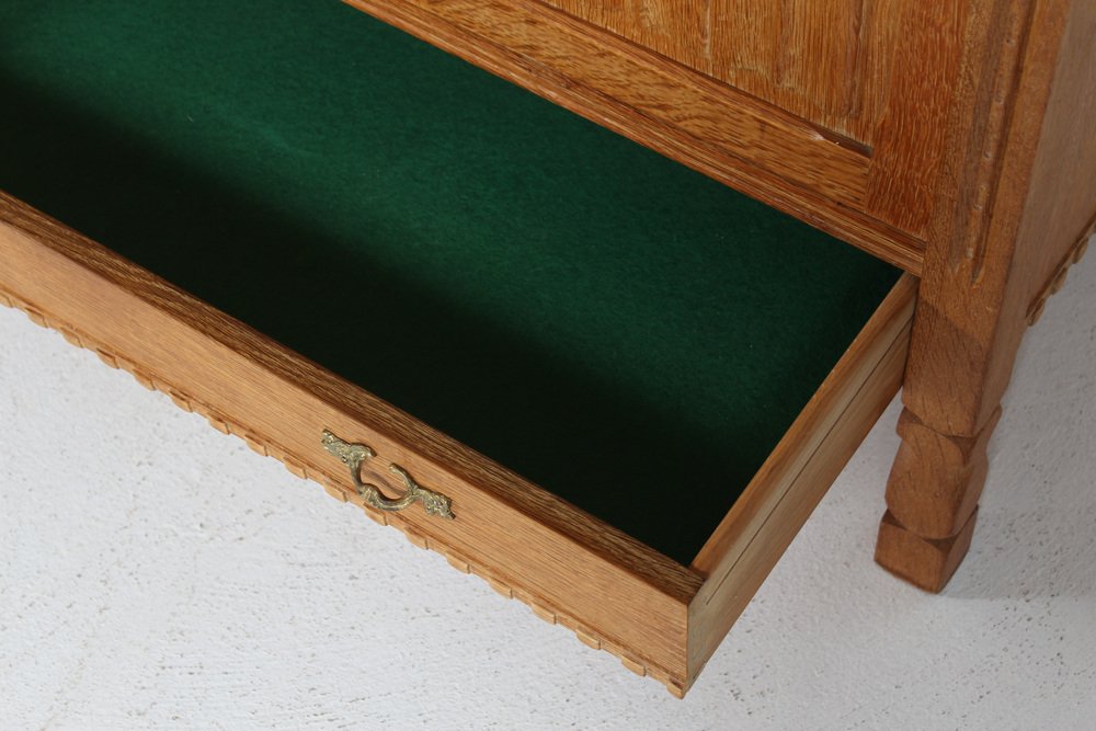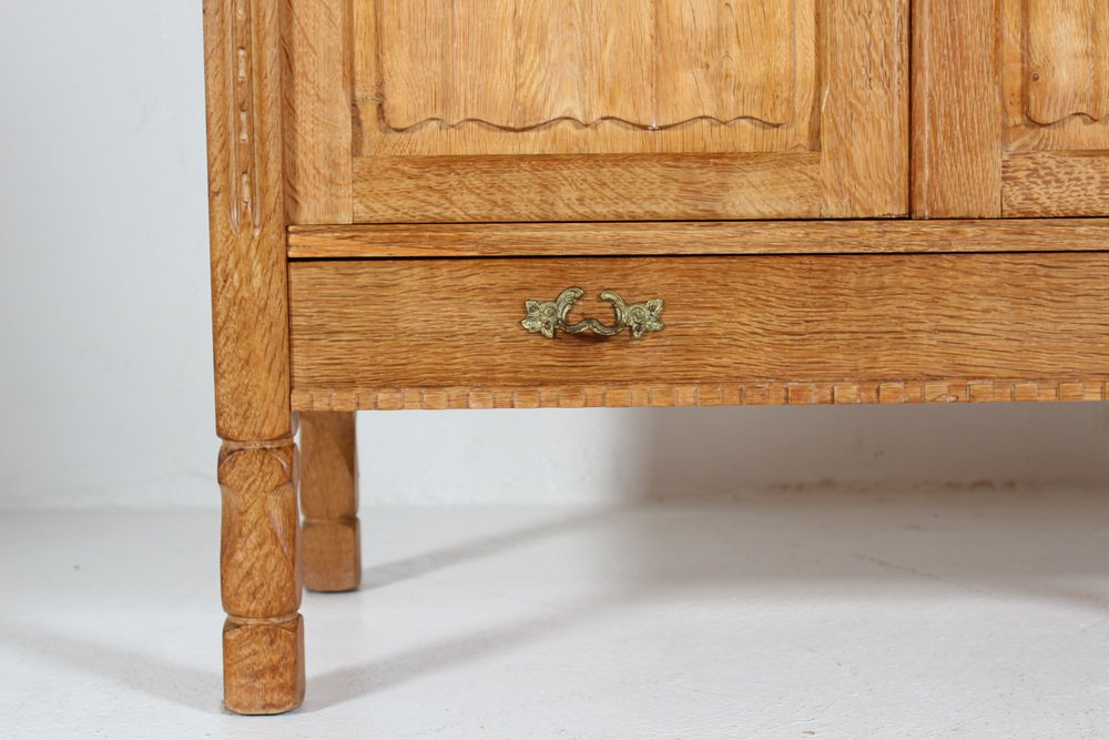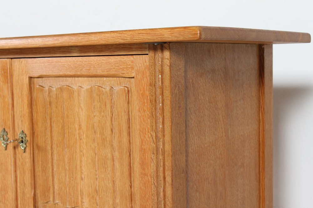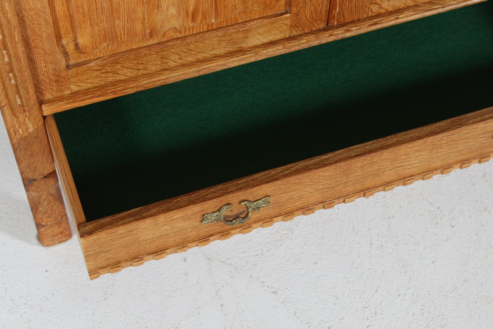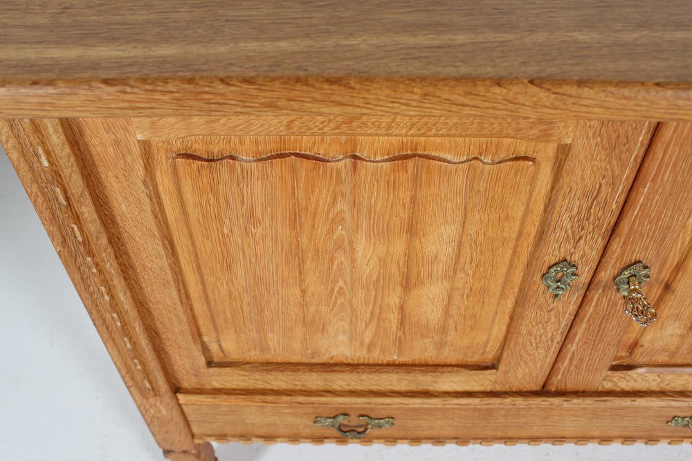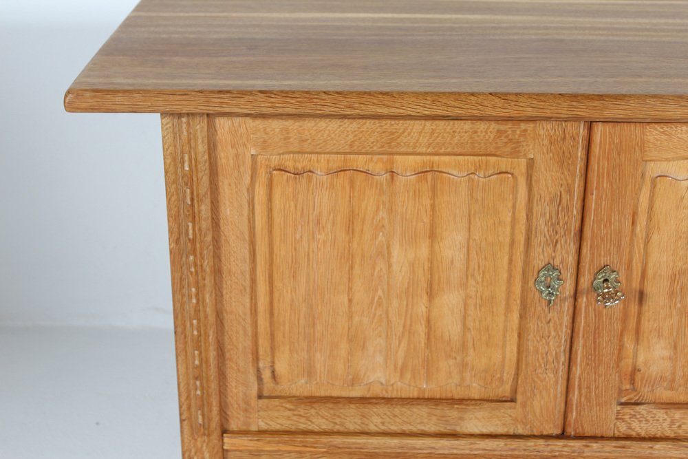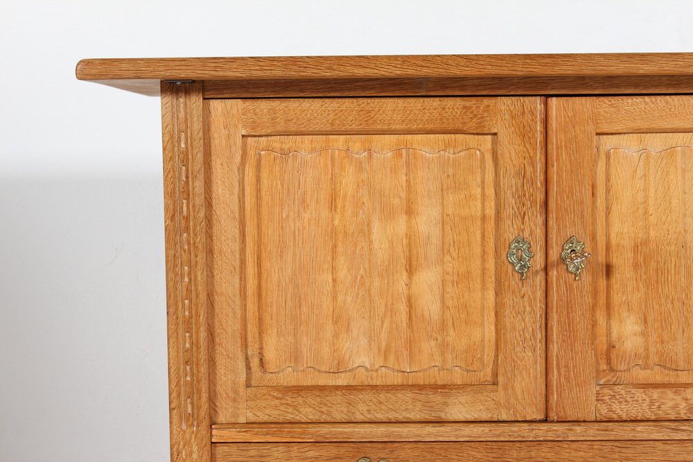 Long Brutalist Danish Oak Sideboard with 4 Doors attributed to Henning Kjærnulf, 1970s