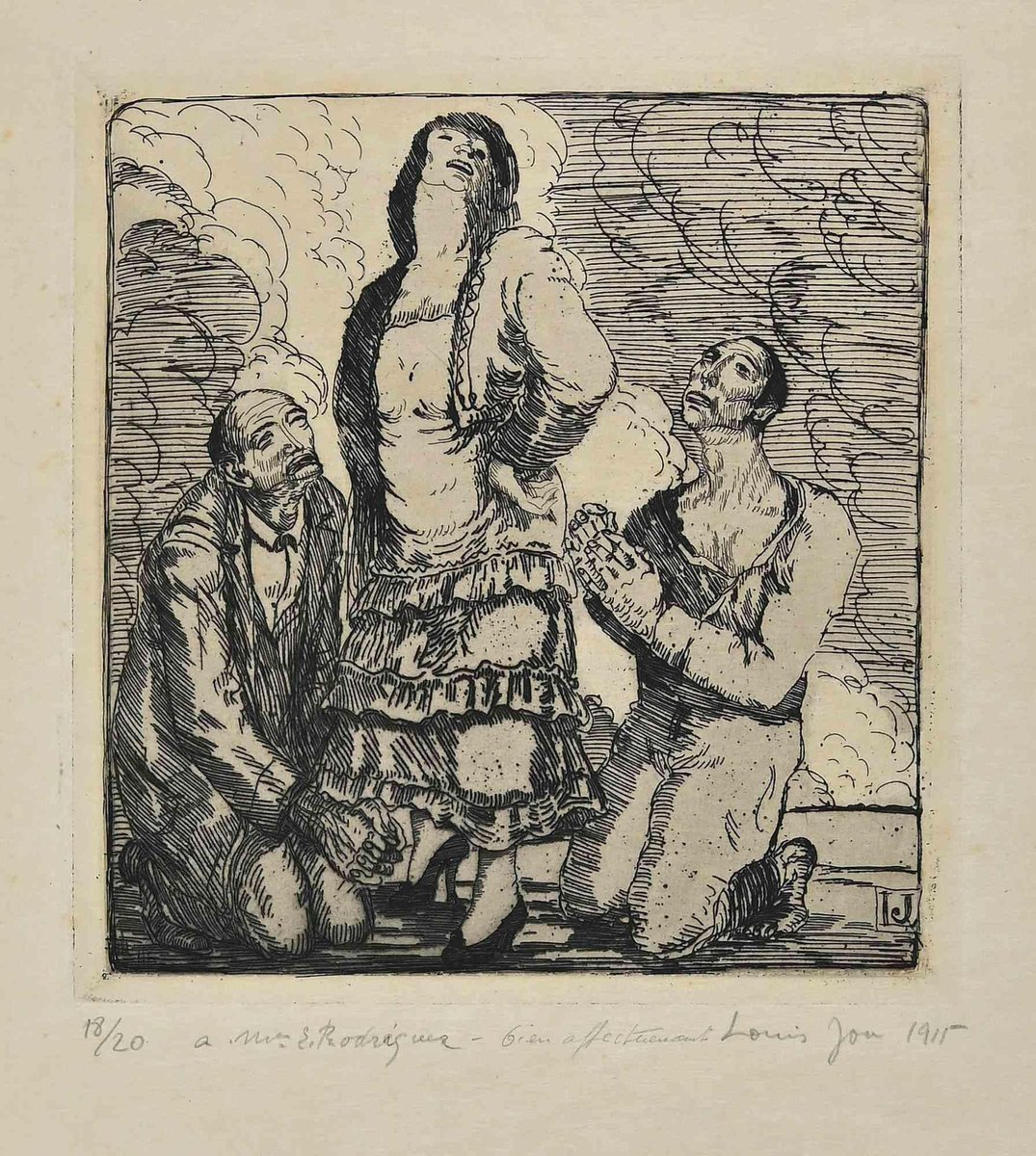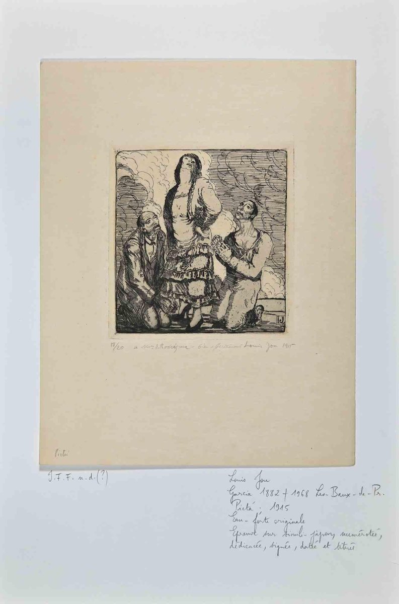 Louis Jou, Pietà, Original Etching, Early 20th-Century