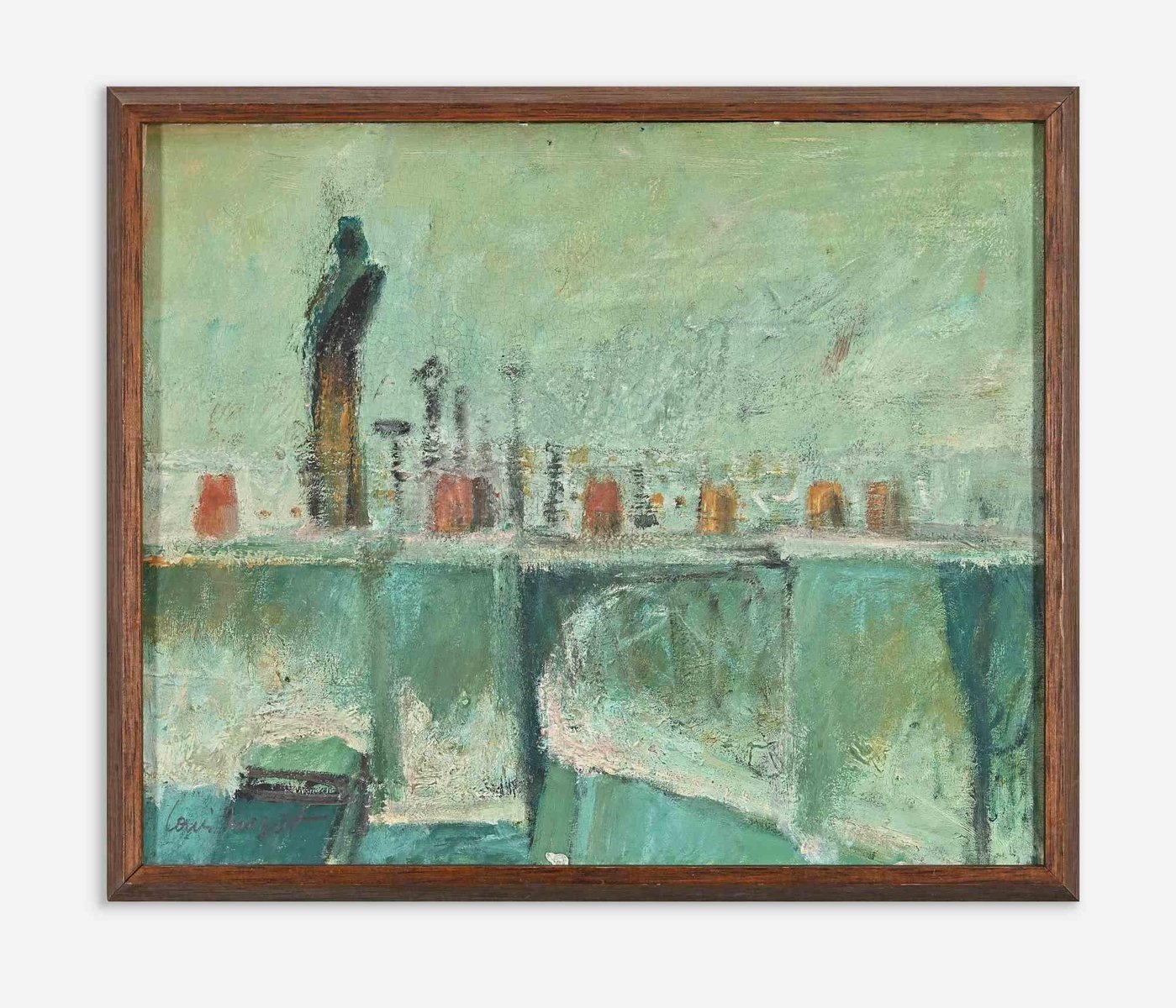 Louis Mazot, City View, Mixed Media on Board, Late 20th Century, Framed