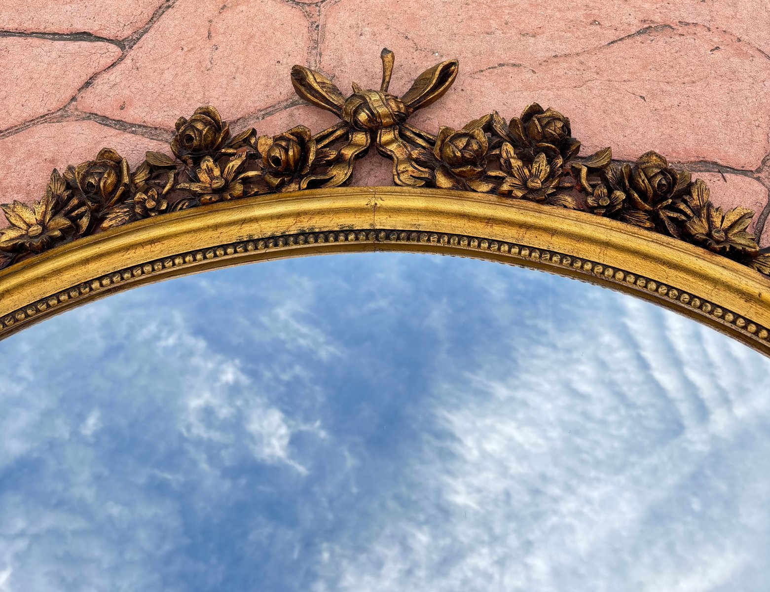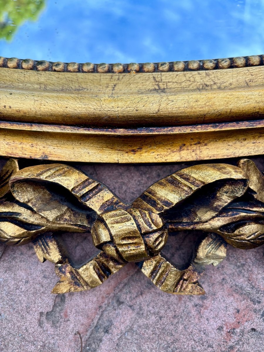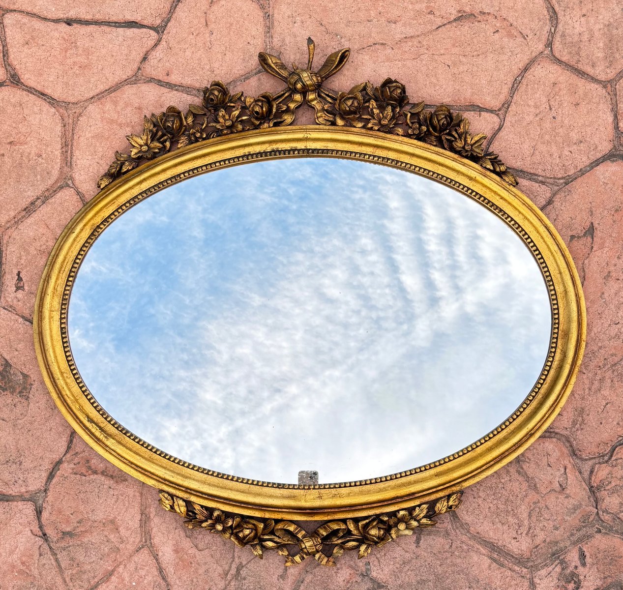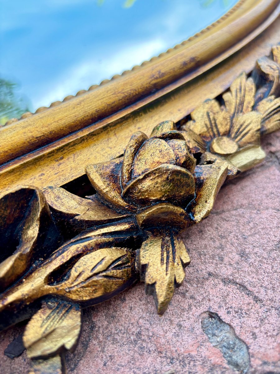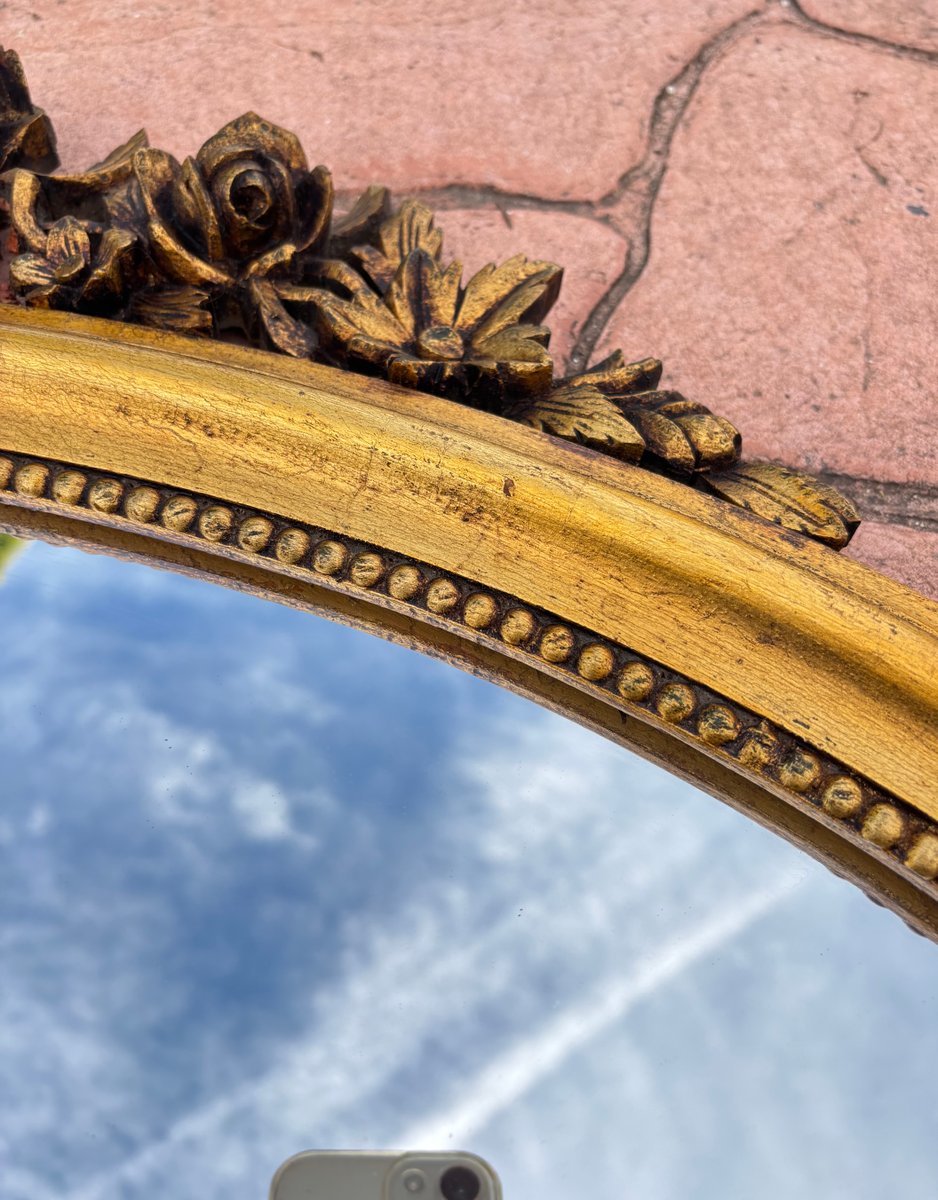 Louis XVI Style Oval Wall Mirror with Gilt Frame and Floral Decoration, 1940