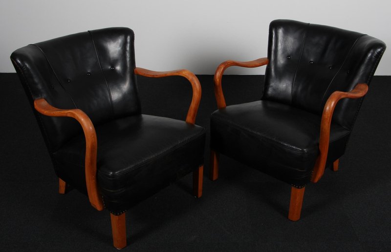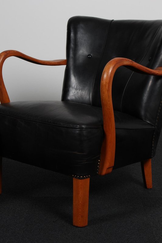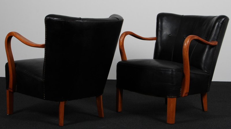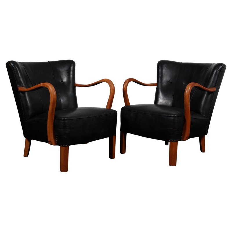 Lounge Chairs in Original Leather and Beech from Alfred Christensen, 1940s, Set of 2