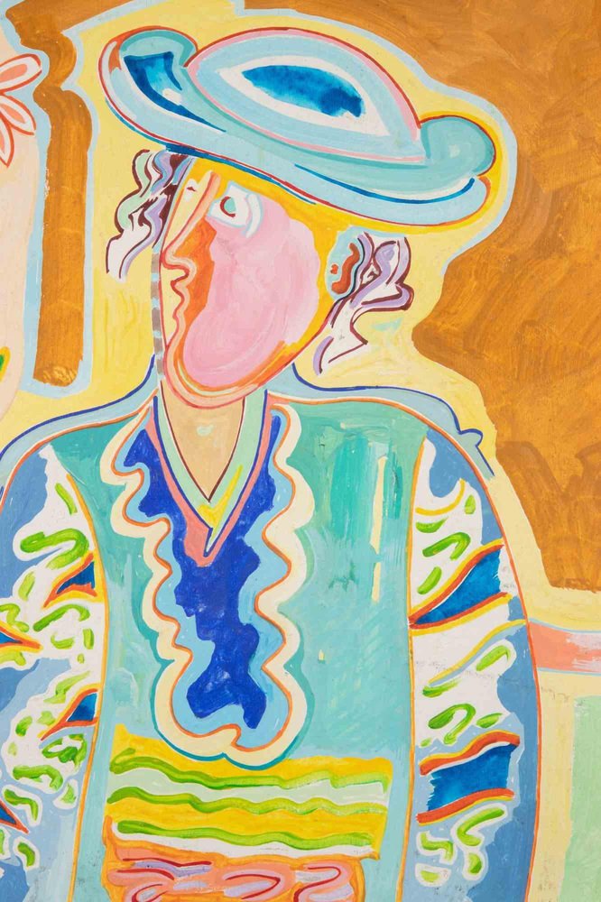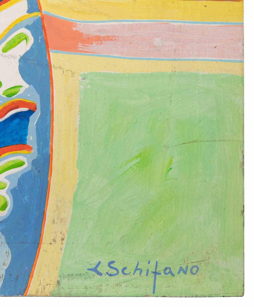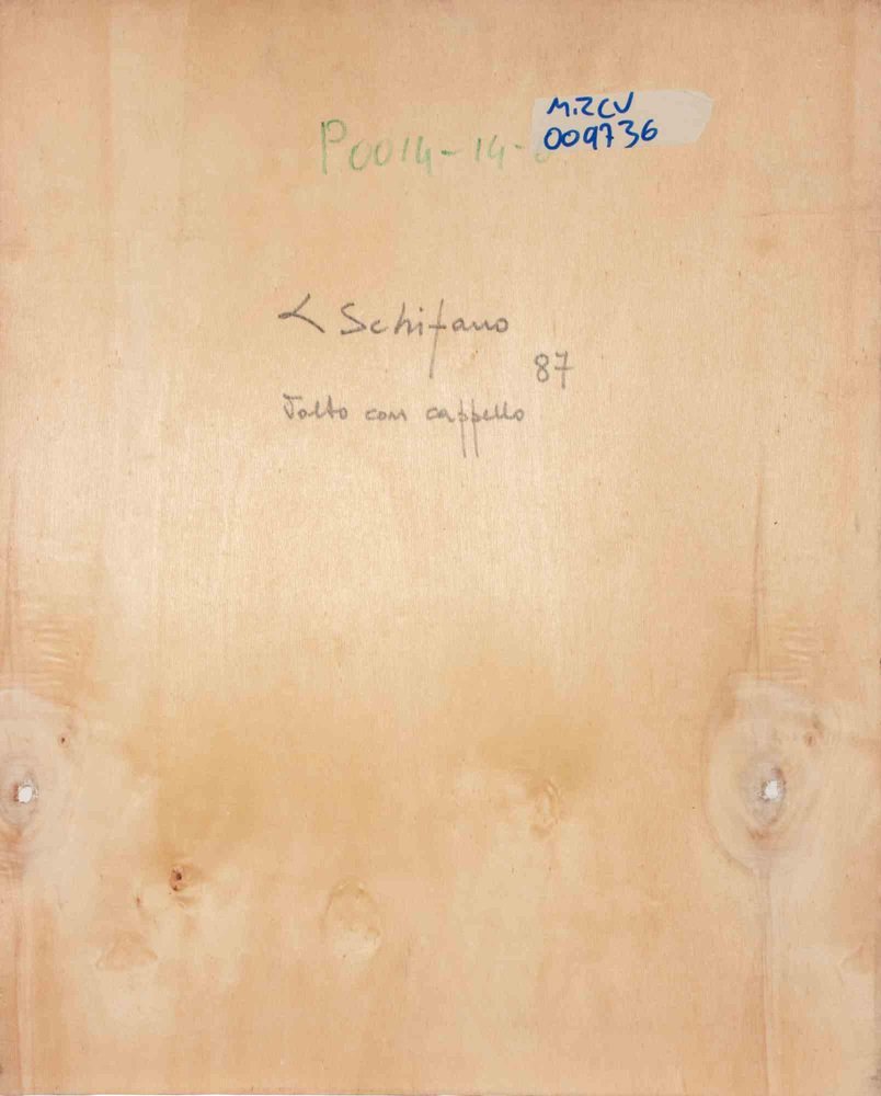Luciano Schifano, Portrait with Hat, Oil Painting, 1988