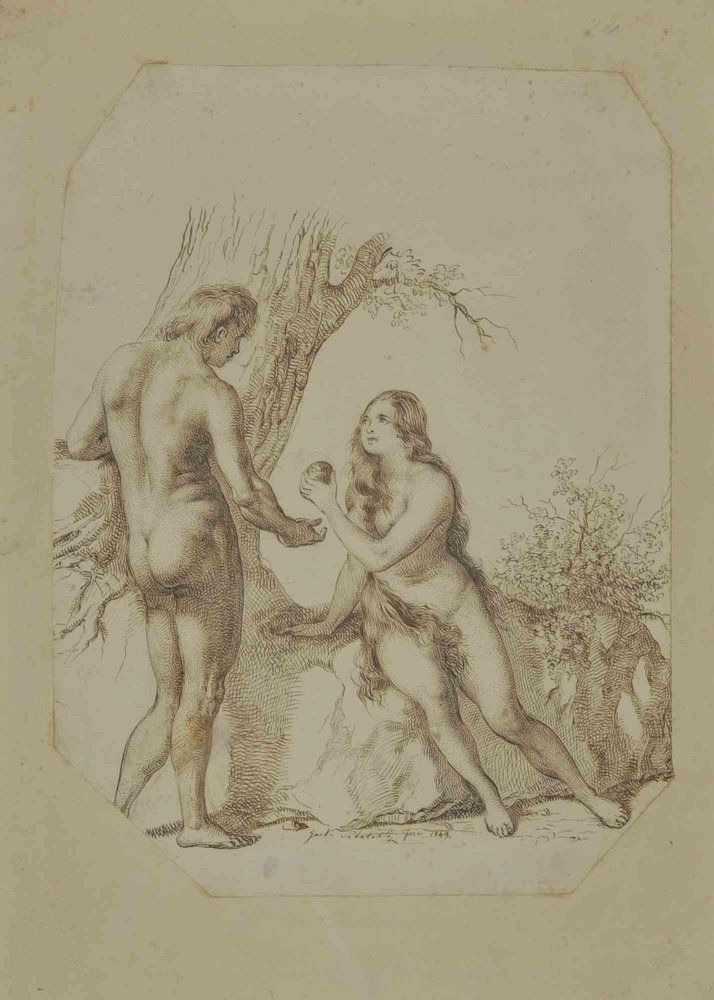Luigi Sabatelli, Adam and Eve, Drawing, 1849