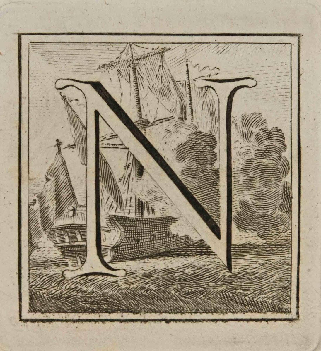 Luigi Vanvitelli, Letter of the Alphabet N, Etching, 18th Century