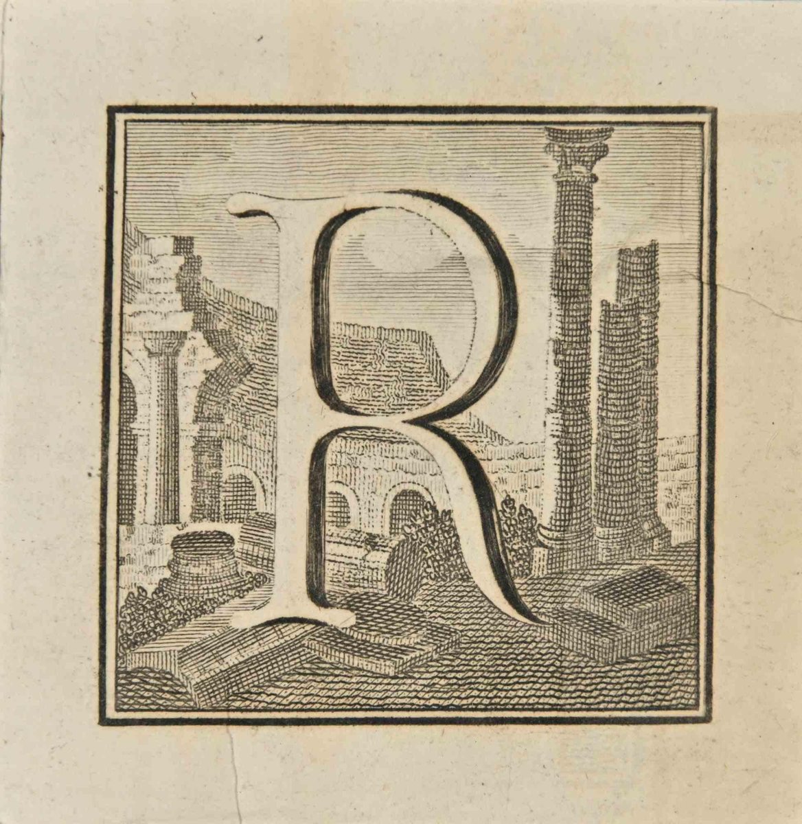 Luigi Vanvitelli, Letter of the Alphabet R, Etching, 18th Century