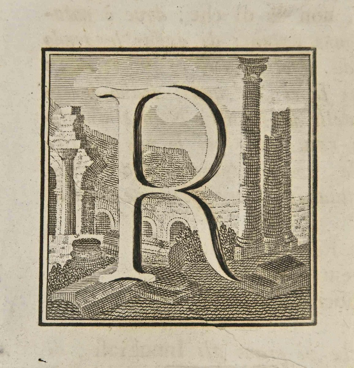 Luigi Vanvitelli, Letter of the Alphabet R, Etching, 18th Century