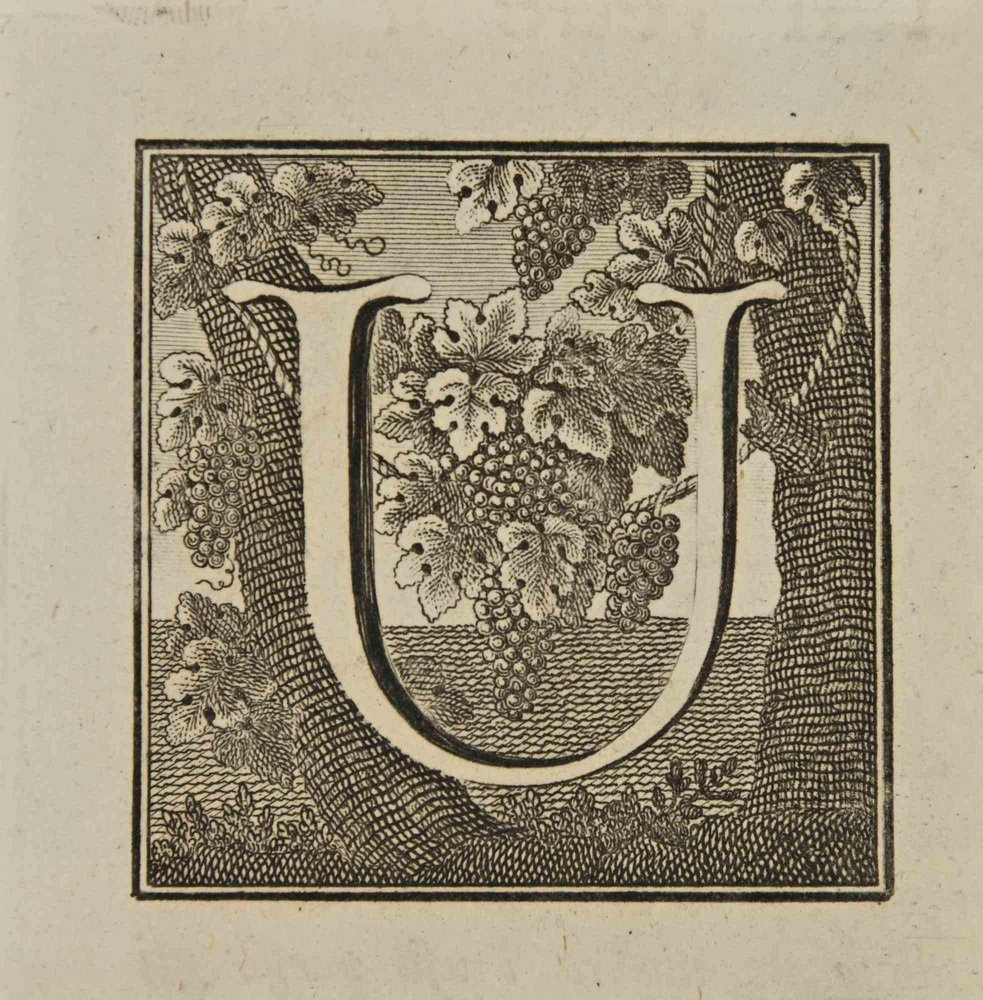 Luigi Vanvitelli, Letter of the Alphabet U, Etching, 18th Century