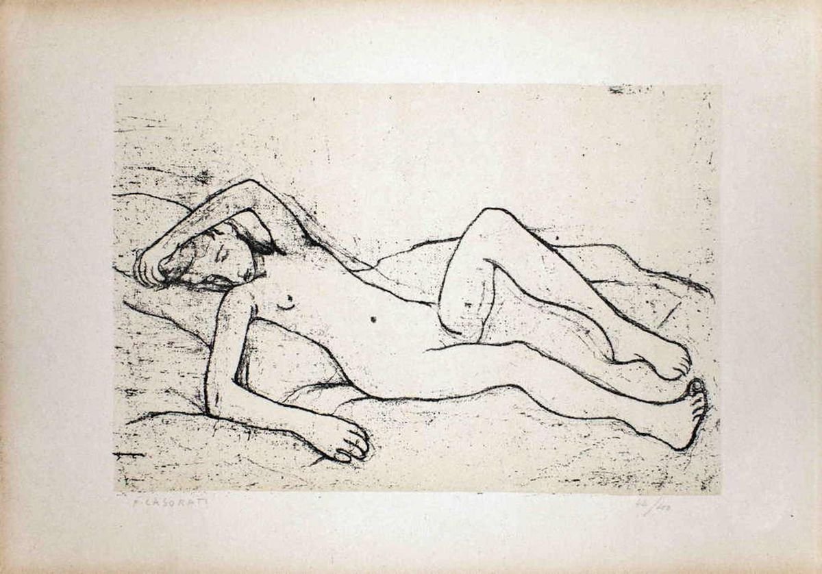 Lying Nude Woman - Original Lithograph by Felice Casorati - 1946 1946