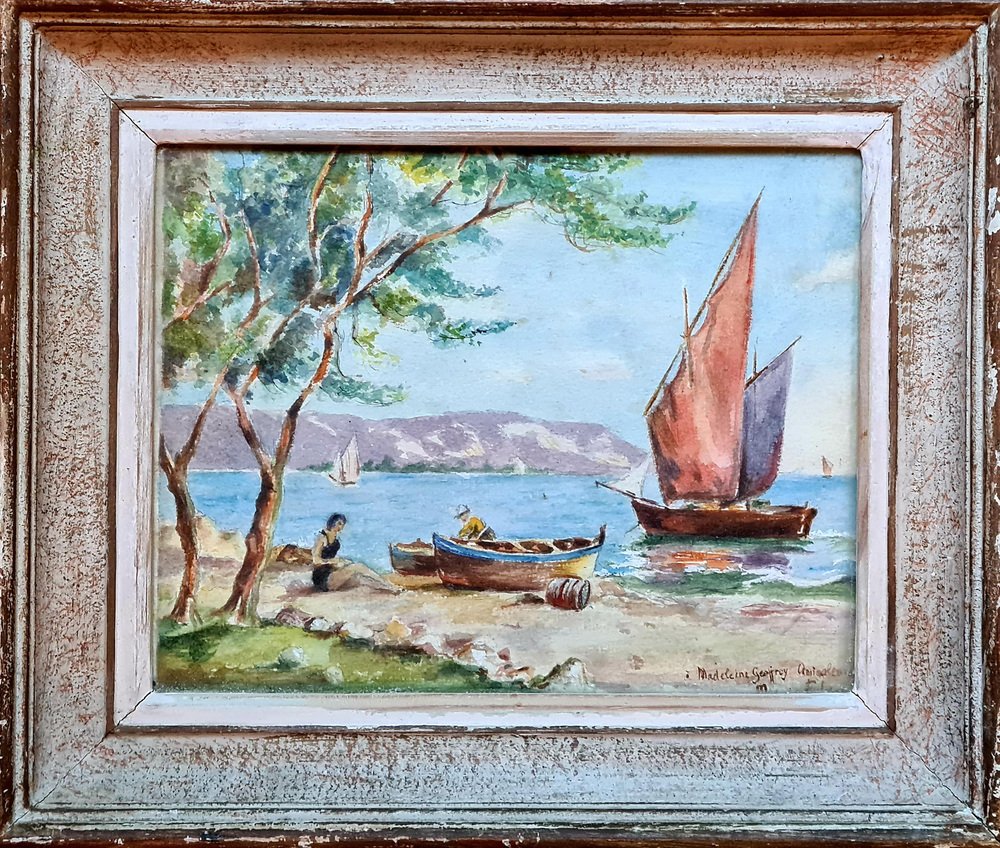 Madelaine Geoffroy, Day at the Beach, Gouache & Watercolour, 1950s