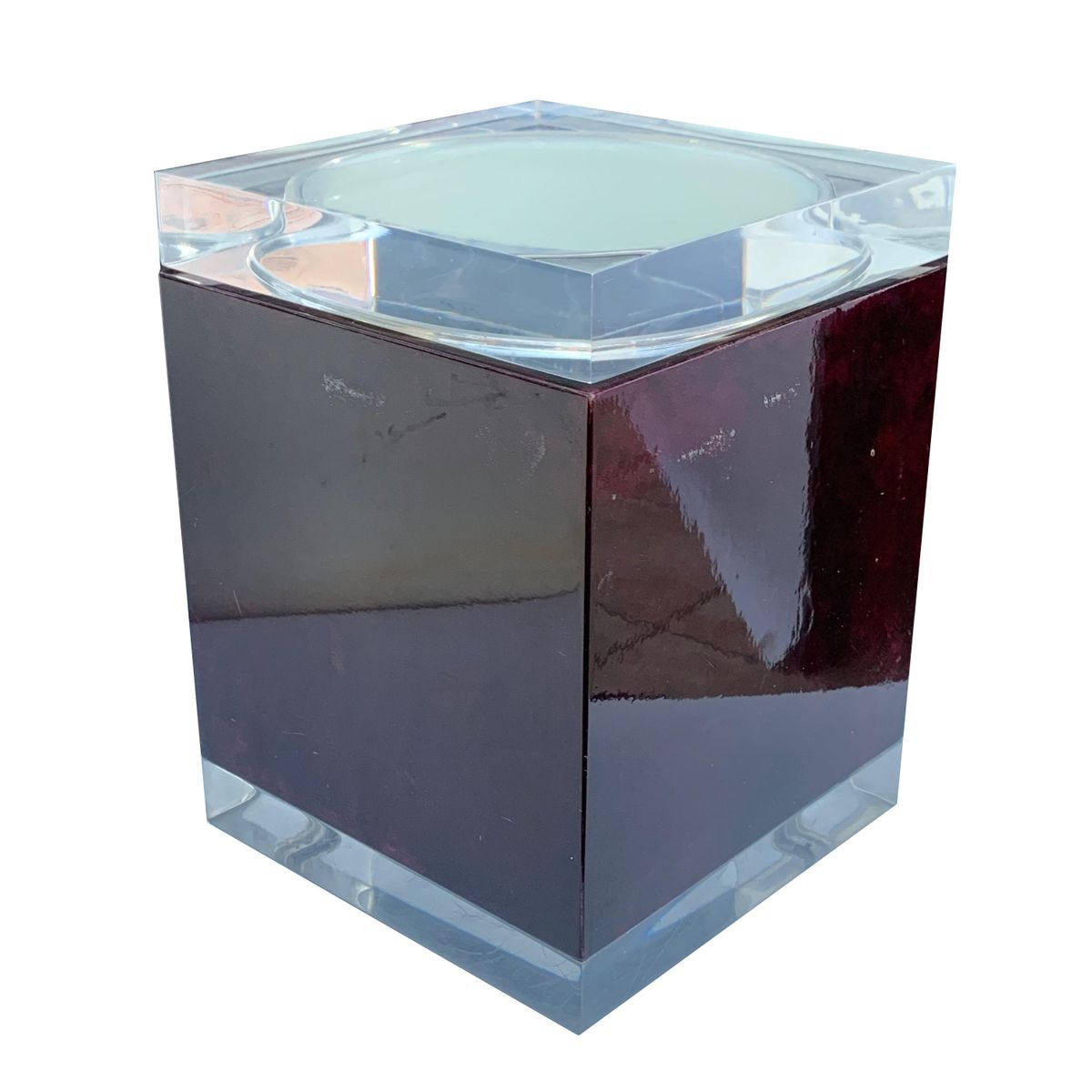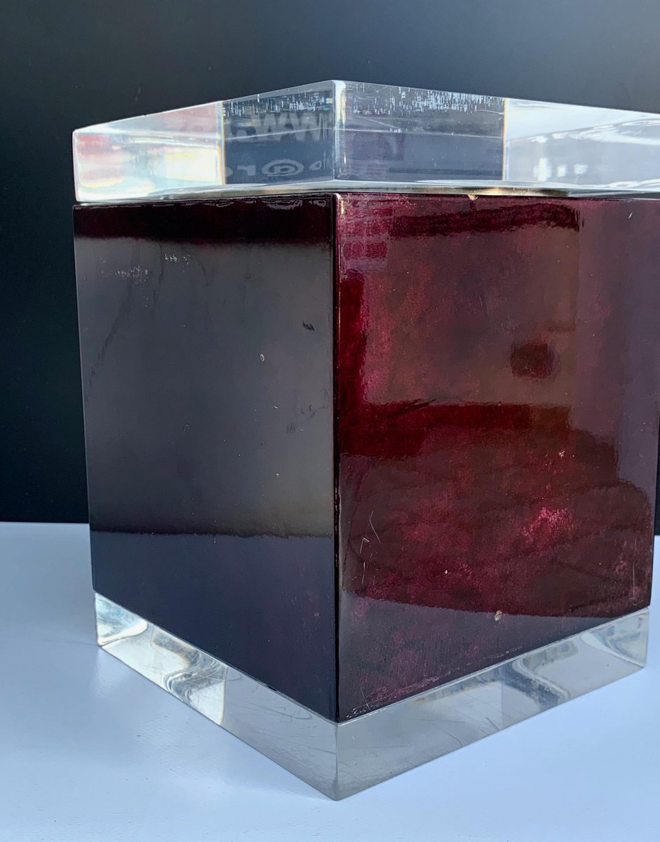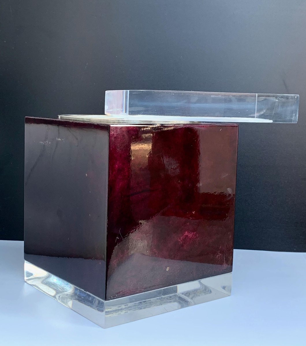 Mahogany, Acrylic Glass & Goatskin Ice Bucket by Aldo Tura, 1970s