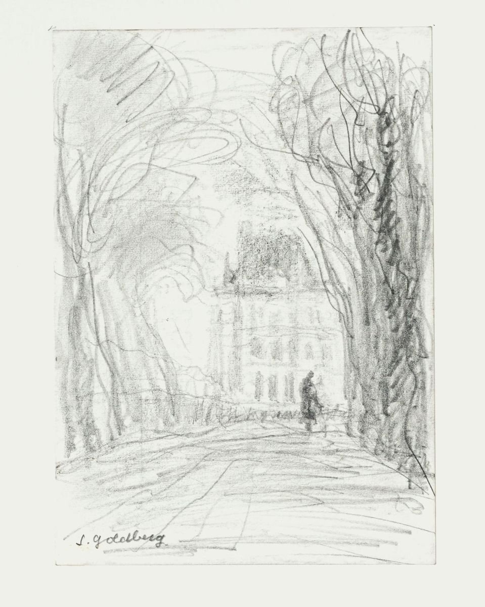 Maison - Original Pencil Drawing by S. Goldberg - Mid 20th Century Mid 20th Century