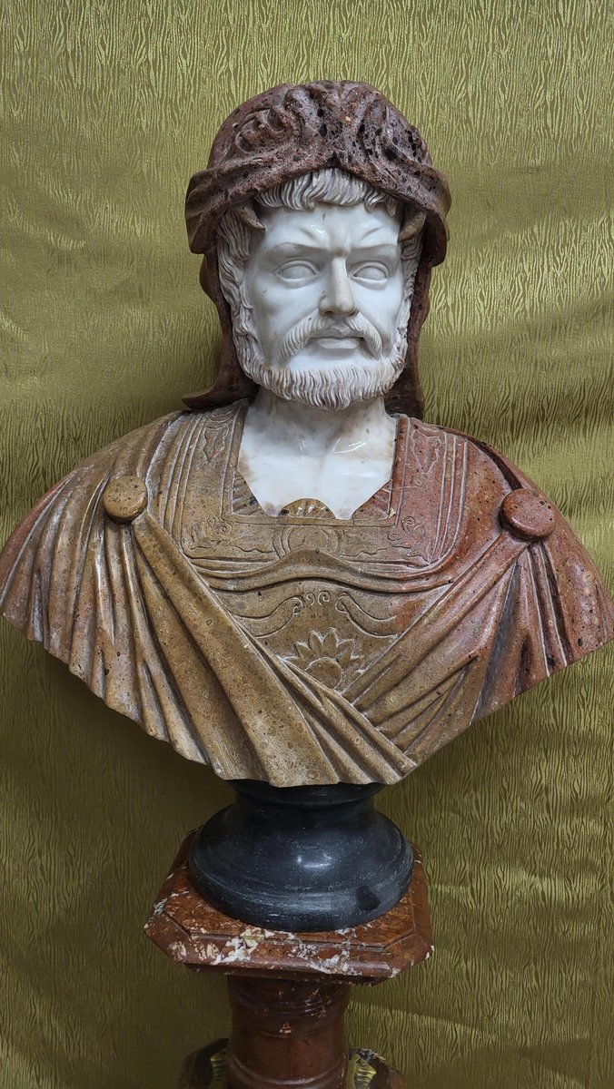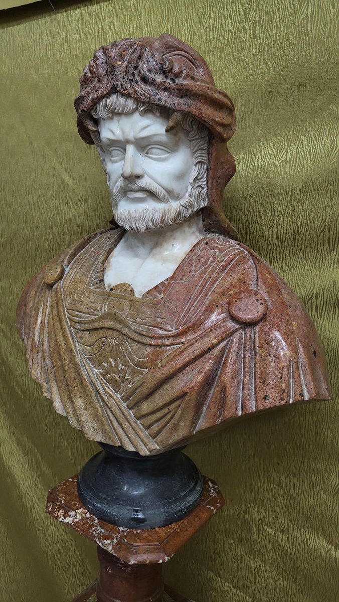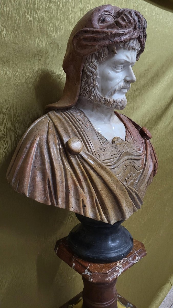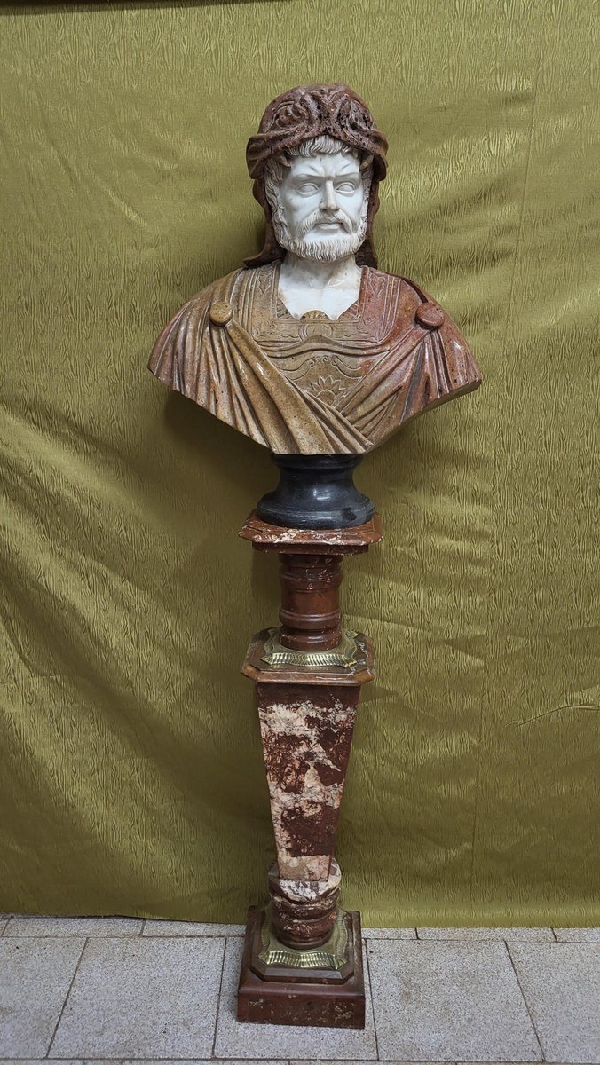 Male Bust, 1970s, Bronze & Marble