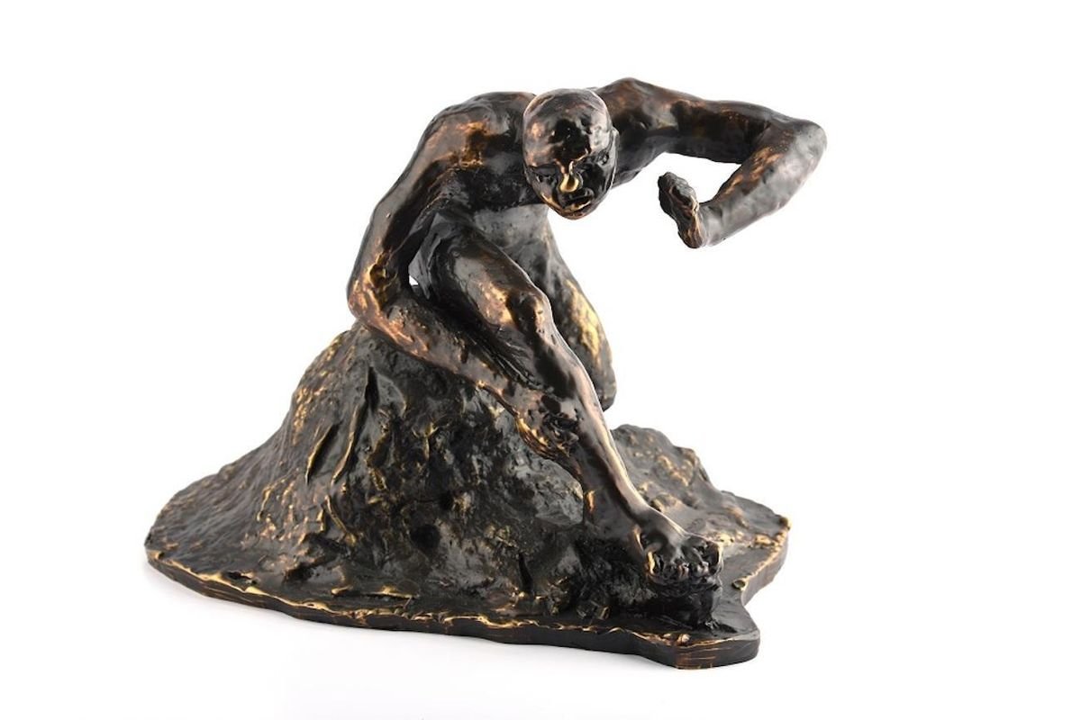 Man on the Rock - Sculpture is a superb artwork realized by the Italian artist Giuseppe Migneco (Messina, 1903 - Milan, 1997). Bonded bronze sculpture which belongs to a limited edition of 99 exemplars. Dimensions: cm 30 x 22 x 23 (height). This beautiful sculpture, in excellent conditions, represents a male figure curved on a rock. Giuseppe Migneco was an Italian painter, one of the greatest Expressionists of the 20th century. At the beginning of his artistic career, Giuseppe Migneco painted paintings of autobiographical content, created in atmospheres alive in his memory. In 1934, he came into contact with some important painters like Renato Birolli, Raffaele De Grada and Aligi Sassu, who guide him to discover that pictorial world towards which, nebulously, but also irresistibly, he had always felt attracted. Some years later, in 1937, he was among the founders of the ''Corrente'' movement, which brought together artists from different cultural horizons, with the common intention of opening up to modern European culture, rejecting the cultural isolation imposed by fascist politics. This artistic group will embrace artists like Badodi, Birolli, Broggini, Cassinari, Cherchi, Gauli, Guttuso, Manzù, Morlotti, Paganin, Sassu, Valenti, and Vedova. Migneco's art fits into the furrow of social realism, a realism characterized by the influence of Mexican muralism, interpreted with a more rigid and cutting linearity that makes him a ''wood carver who sculpts with a brush'',according to the happy definition of one of his admirers. Strong and sincere Expressionist, Migneco does not know half shades or semitones. The faces of his characters are the expression of a hard land that dispenses pain and fatigue. Humanity is illustrated in its existential struggle, in the continuous and profound confrontation with itself and with the events that besiege it, in consciousness and in the hope of freedom and memory, beyond the absurd solitude of existence. The Sicilian painter, who in over fifty years of work, has expressed in an increasingly courageous and obstinate way, through a masterful use of colors, his commitment as an artist and as a man, exhibited in the most prestigious national and foreign galleries: Gothenburg, Boston, Paris, Stuttgart, New York, Amsterdam, Hamburg and Zurich.