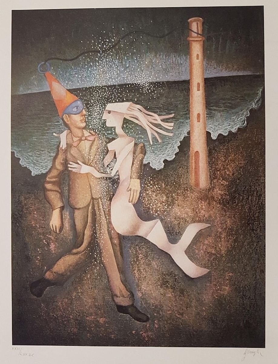 Man with Siren - Original Lithograph by Enrico Benaglia - 1960s 1960s