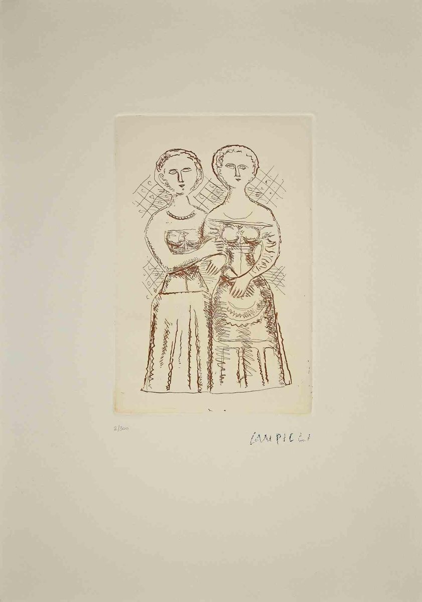 Massimo Campigli, The Two Women, Etching, 1970s