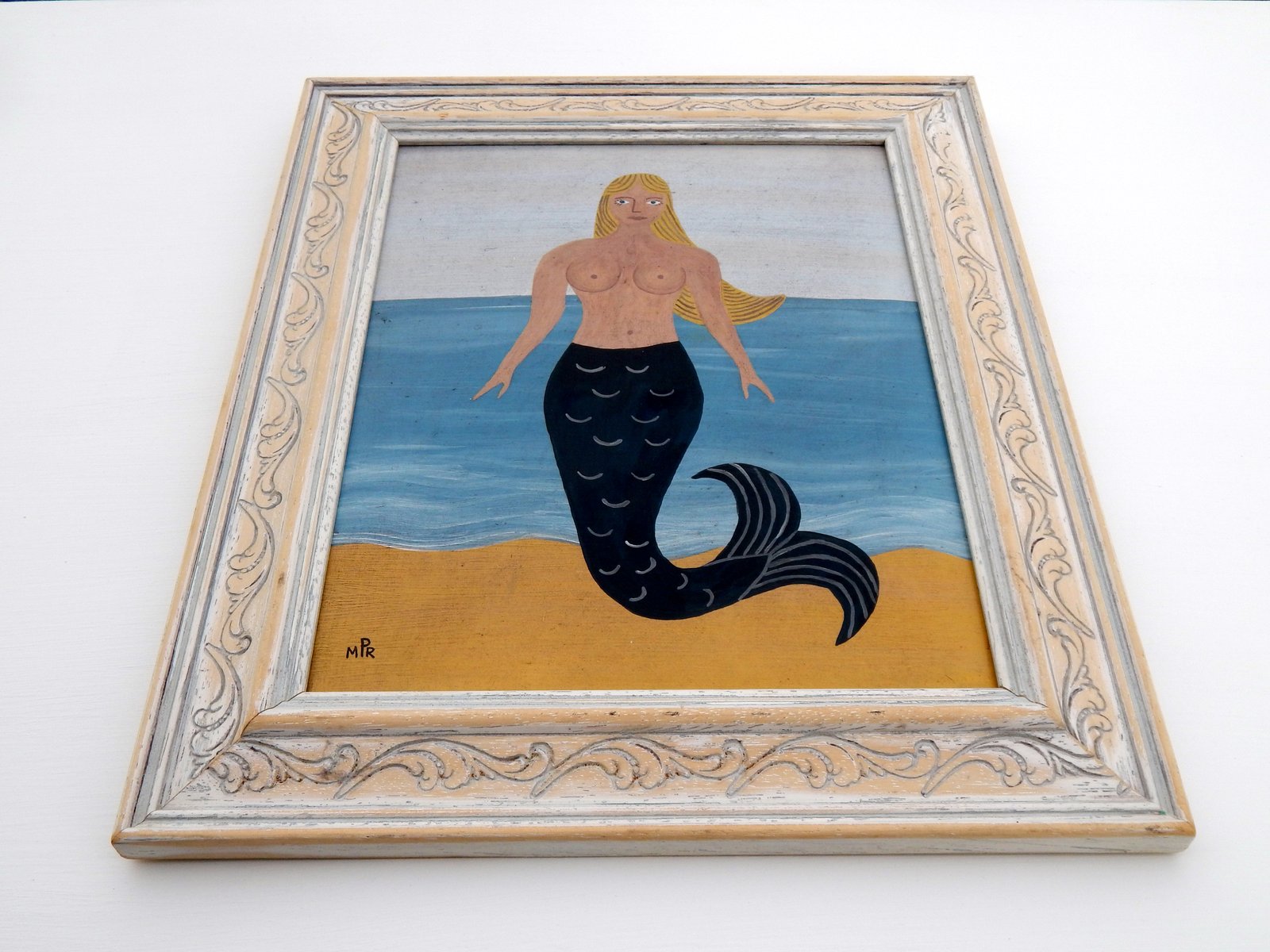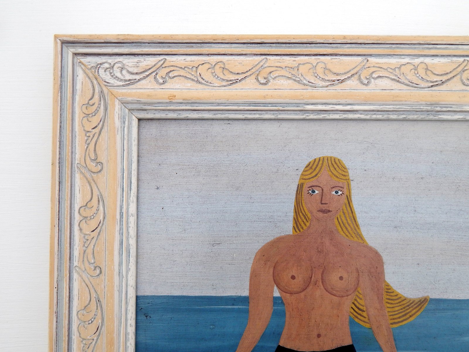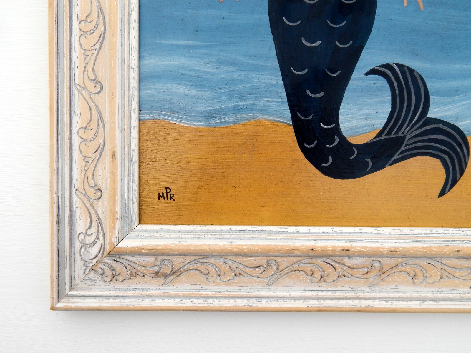 Matt Rix, Naive Style Mermaid Portrait, 2000s, Oil Painting, Framed