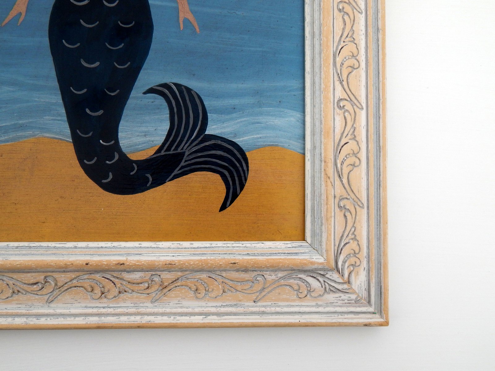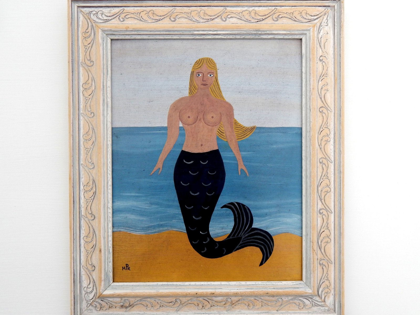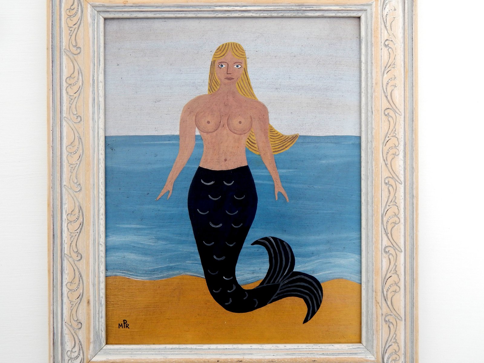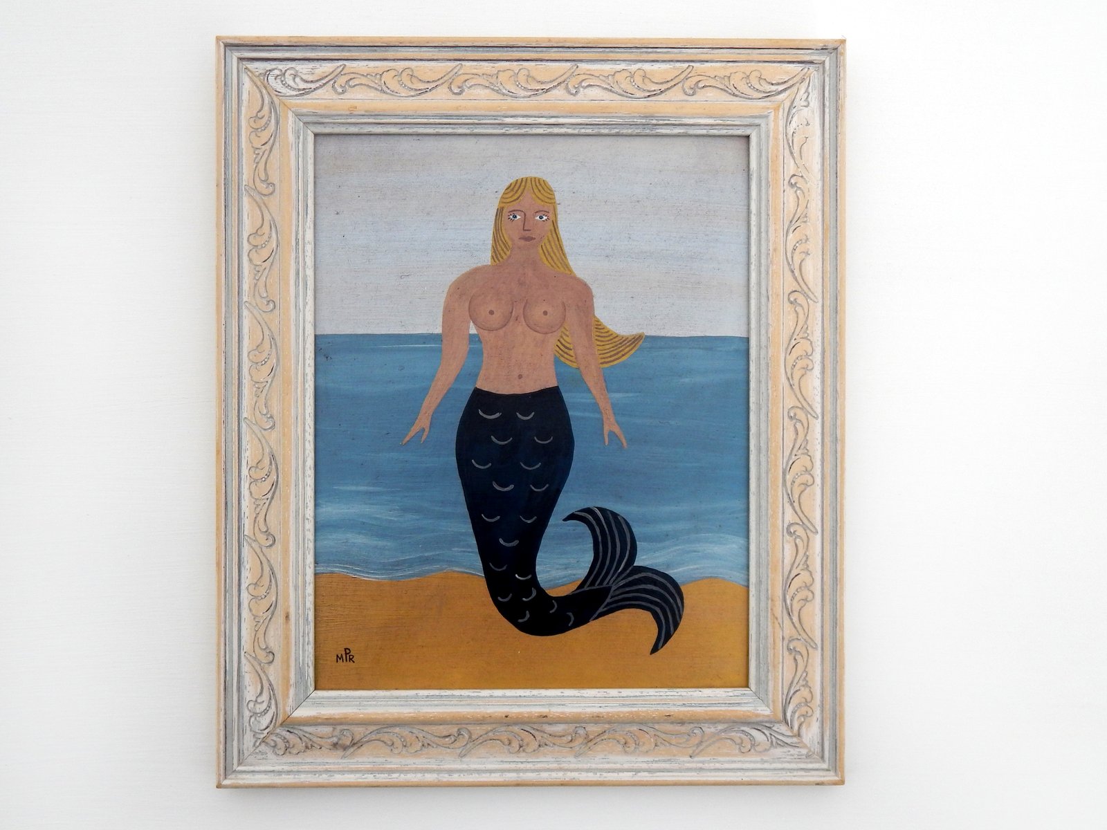Matt Rix, Naive Style Mermaid Portrait, 2000s, Oil Painting, Framed