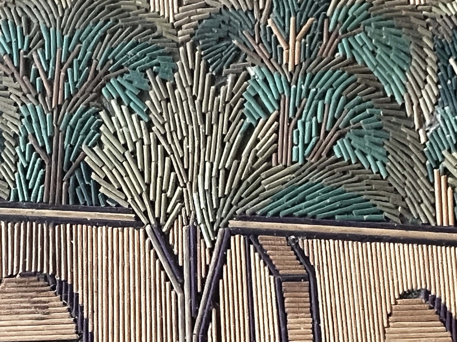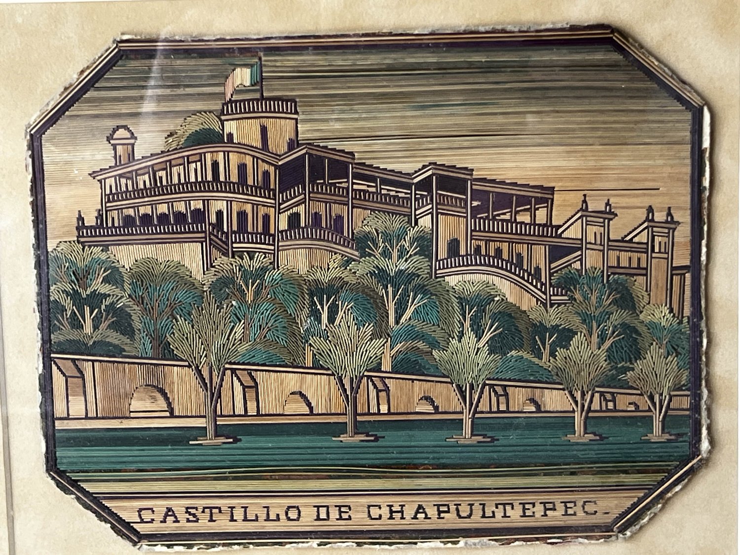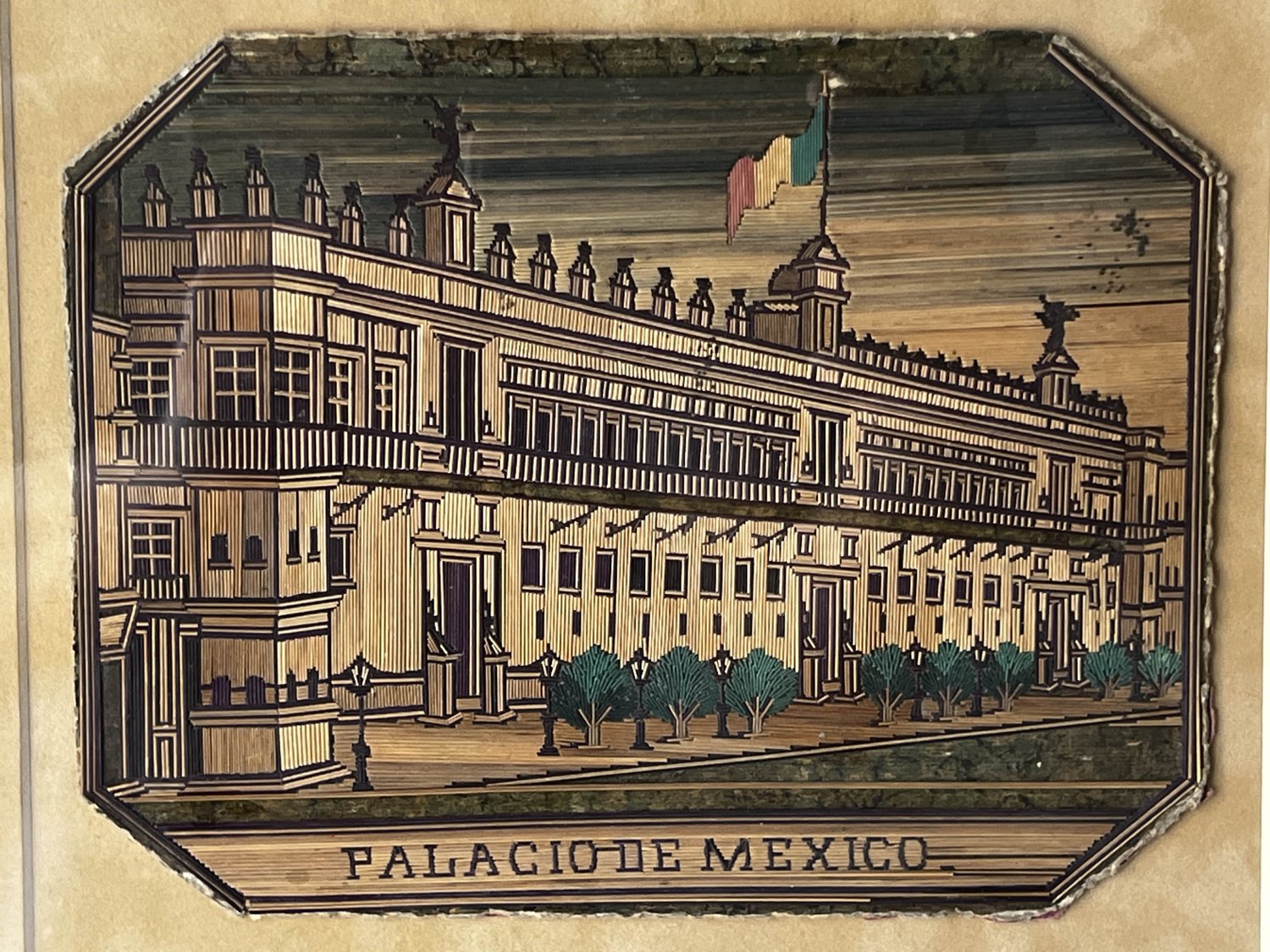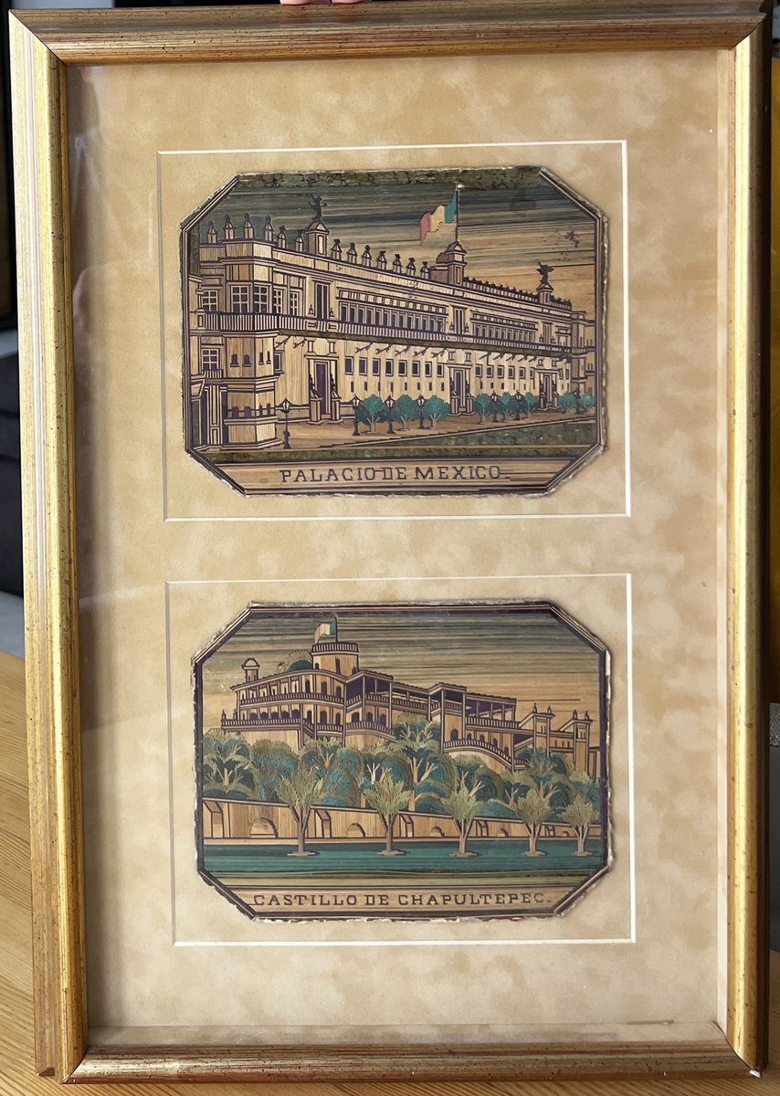 Mexican Artist, Popotillo Chapultepec & Palacio Diptych, 1890s-1910s, Straw Mosaic, Framed
