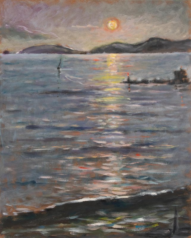 Michelangelo Cupisti, Sunset in Marina di Carrara, Oil Painting, 2000s, Framed