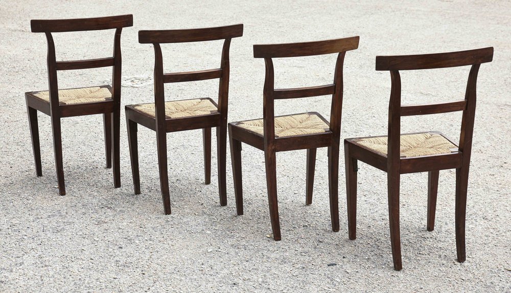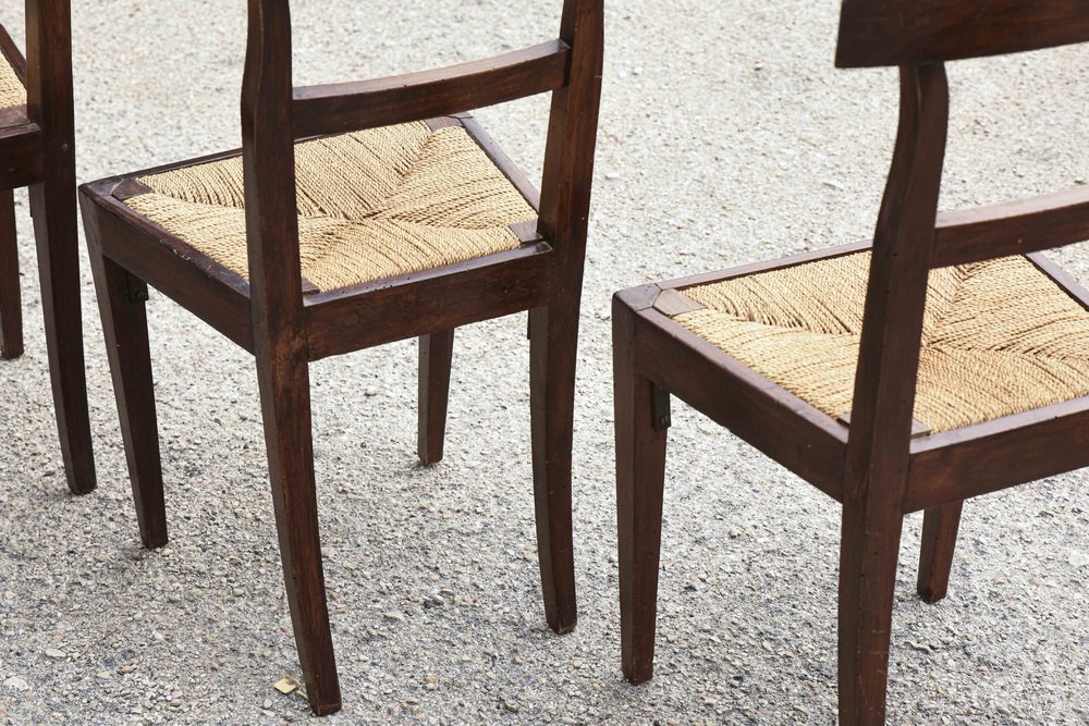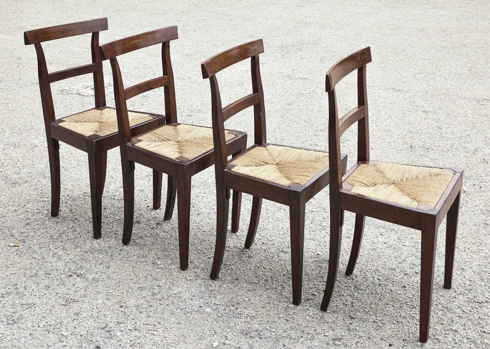 Mid-19th Century Walnut Chairs with Straw Seats