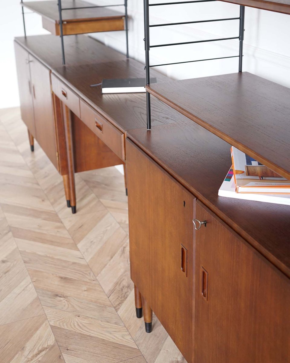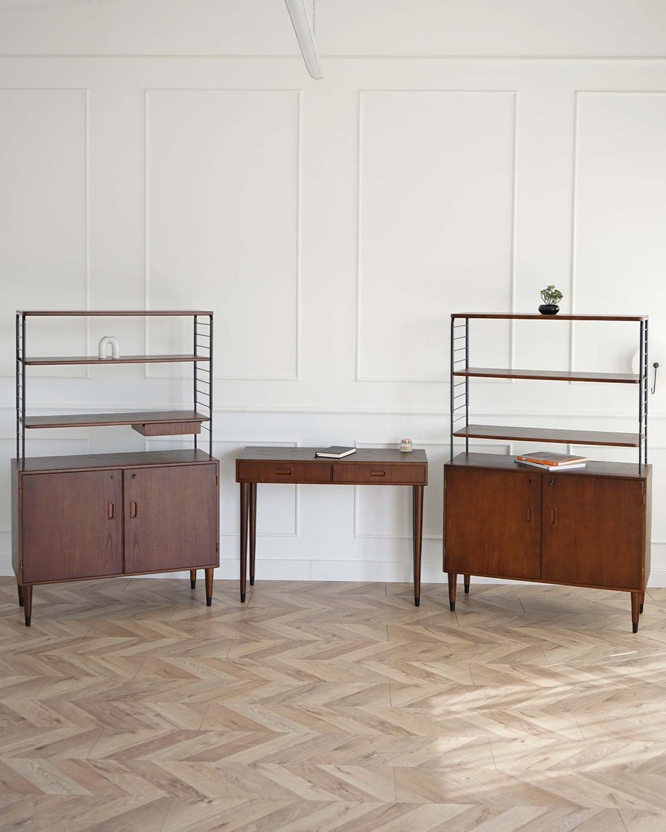 Mid-Century 3-Piece Teak Bookcase System with Writing Desk, Sweden, 1960s, Set of 3