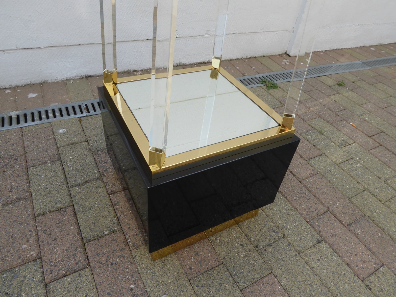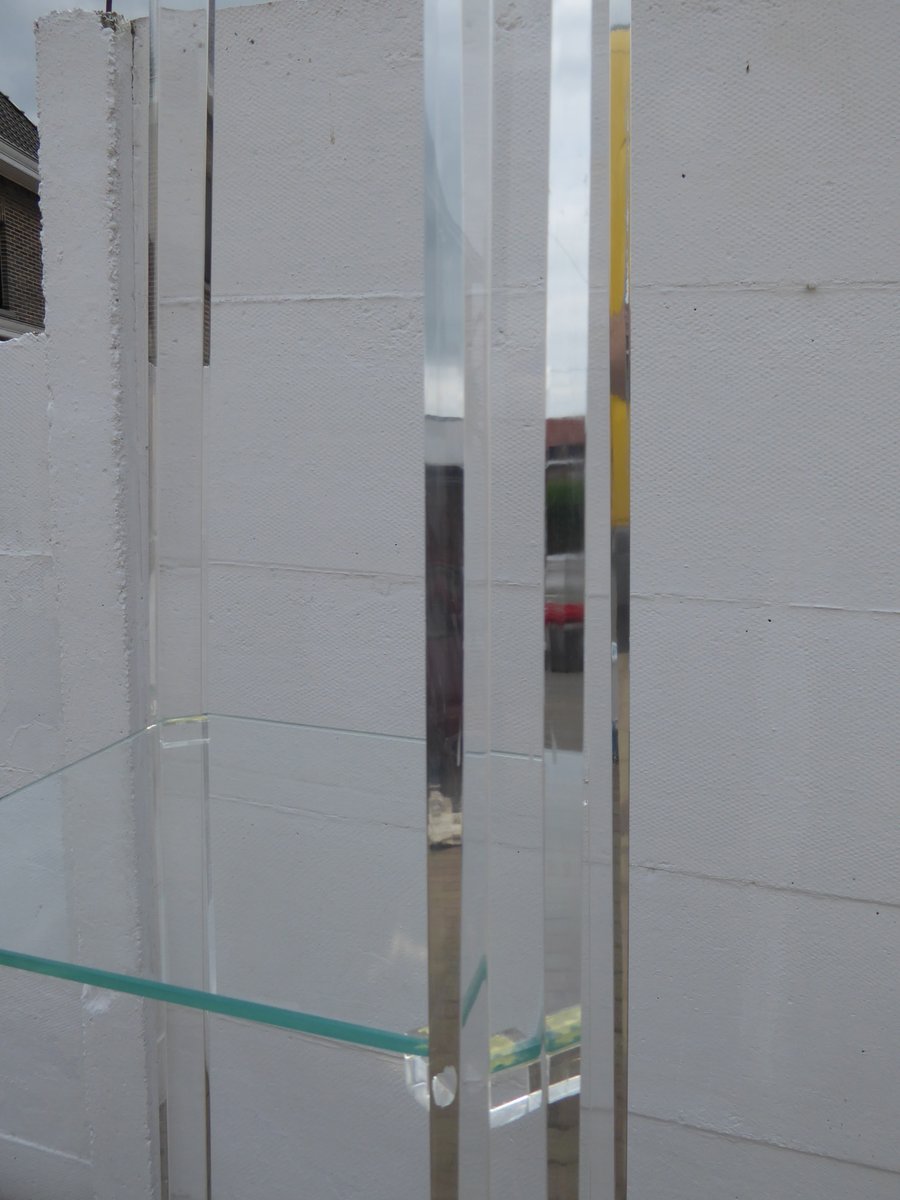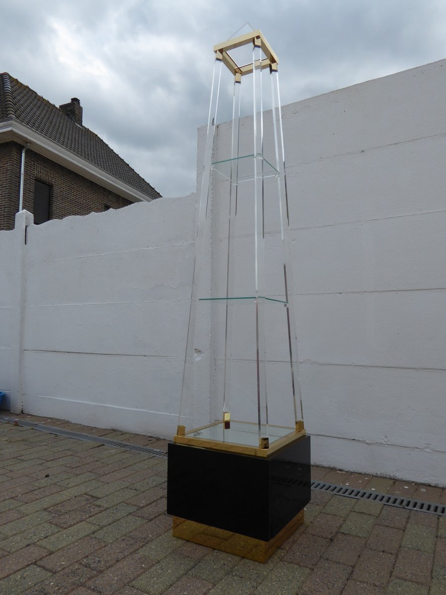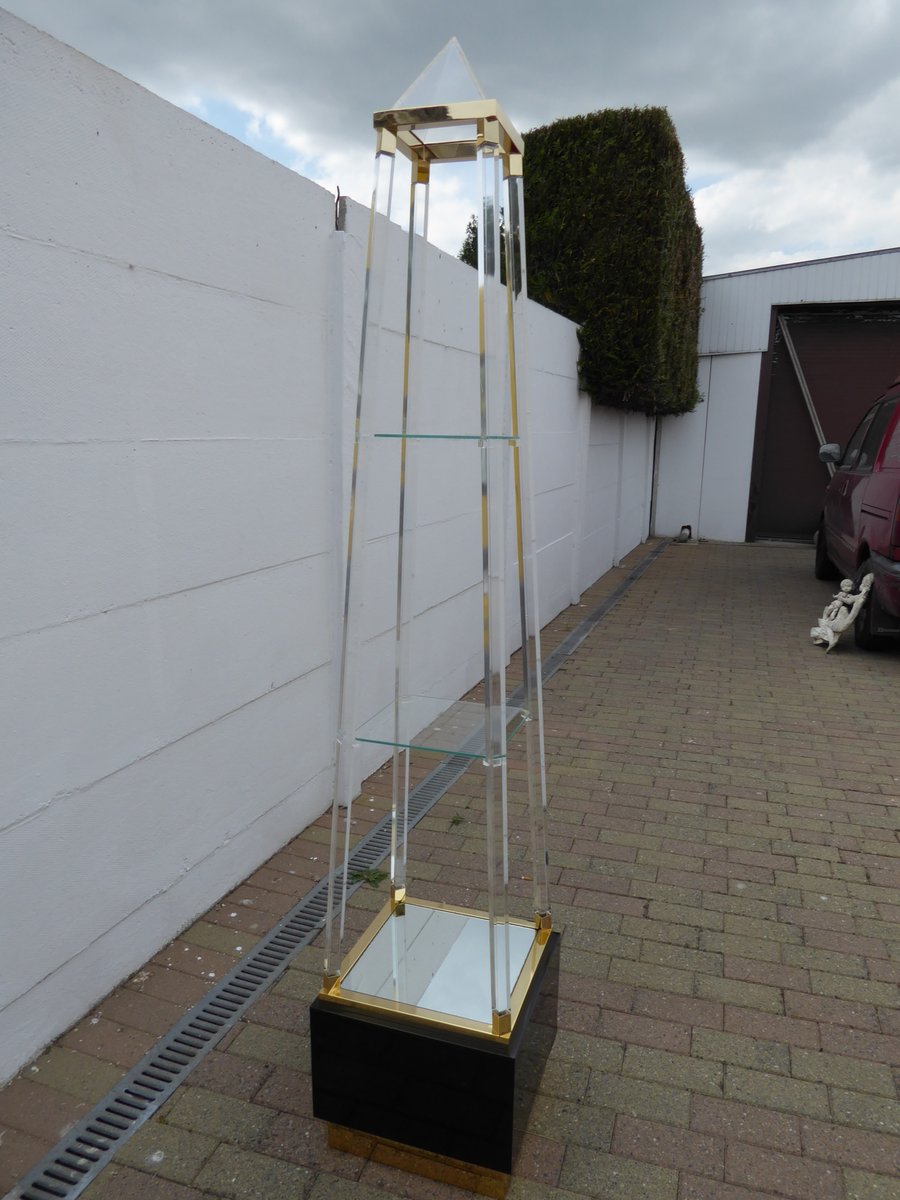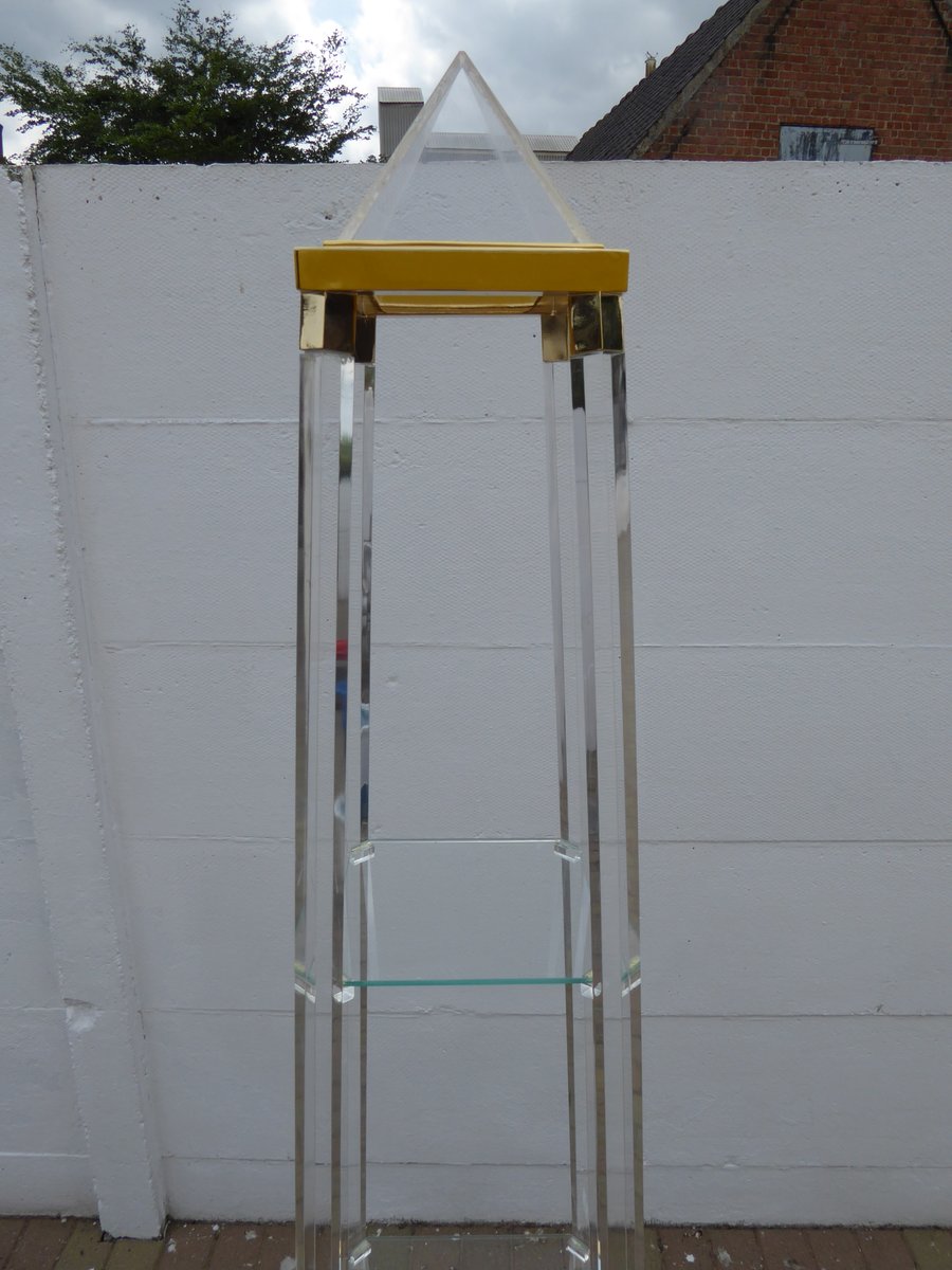 Mid-Century Acrylic Glass & Brass Pyramid Shaped Etagere
