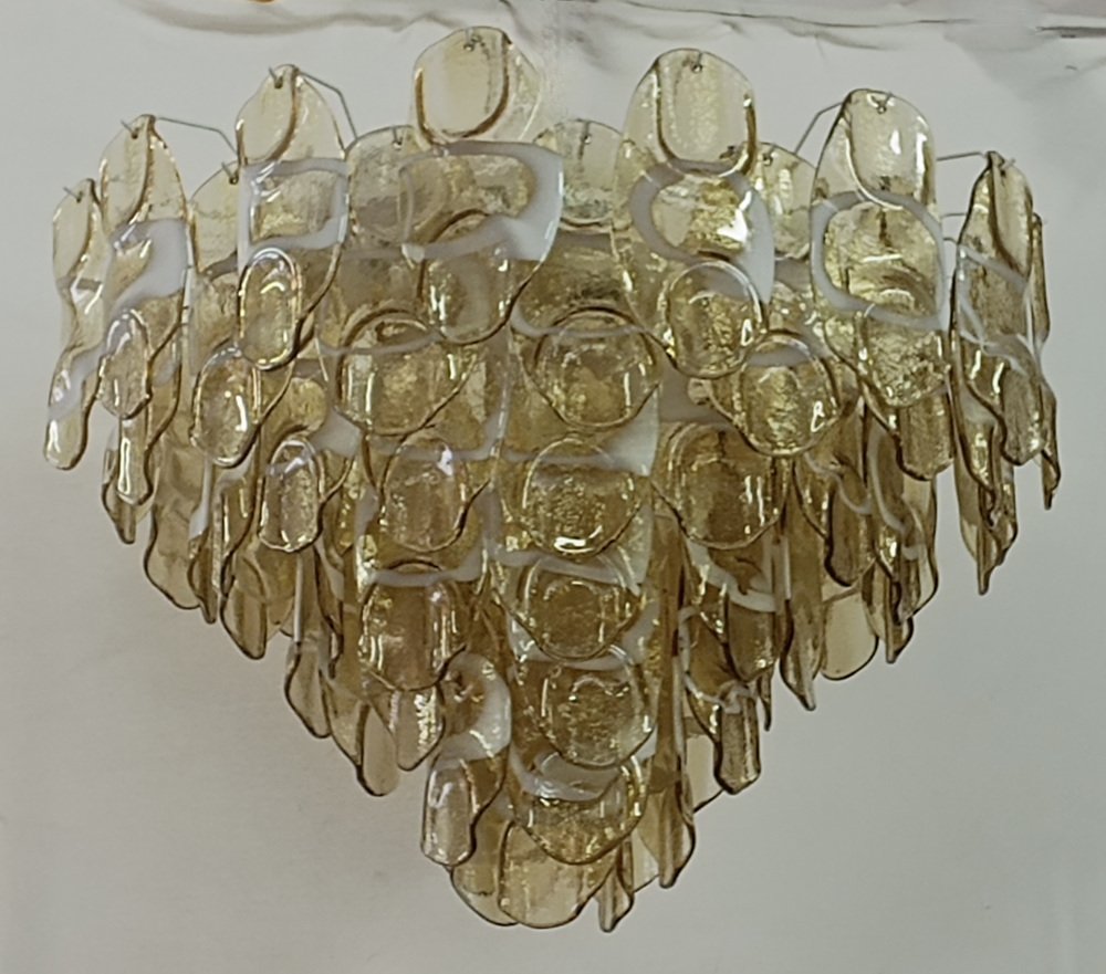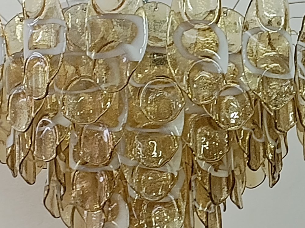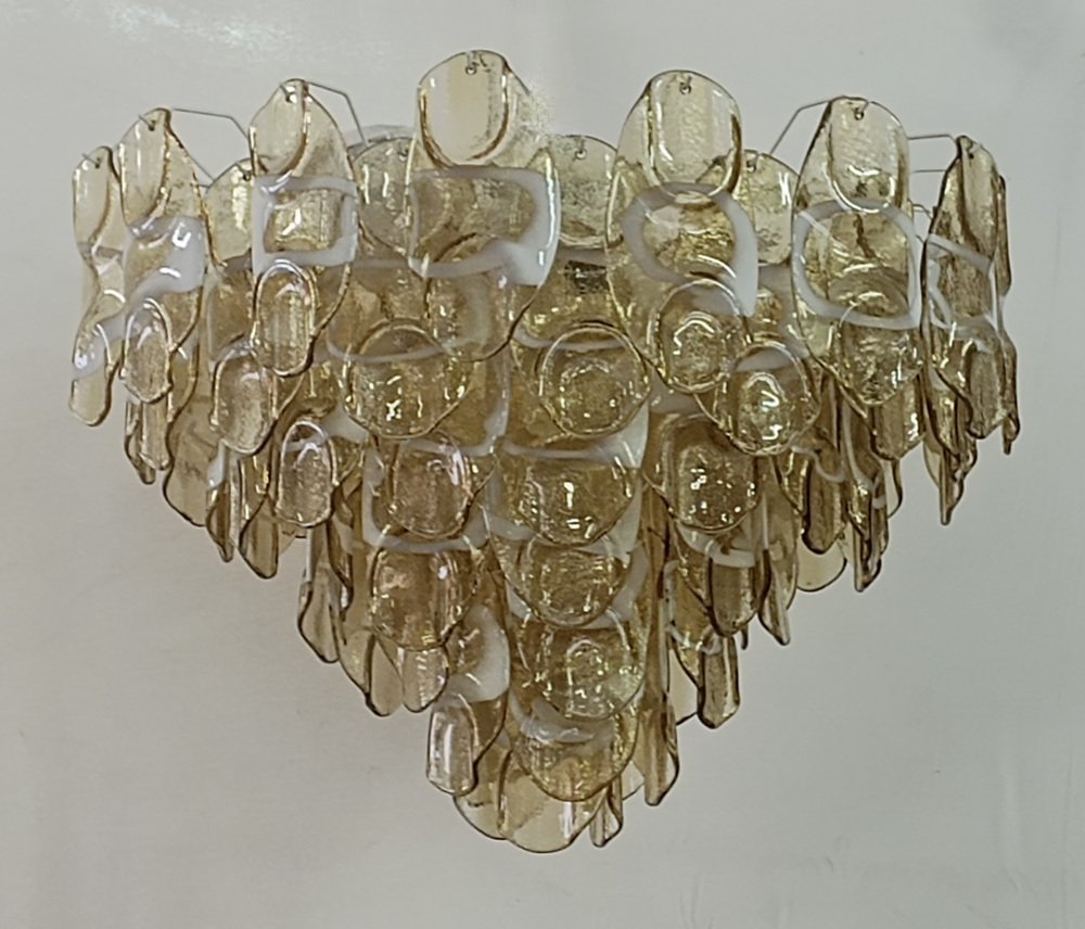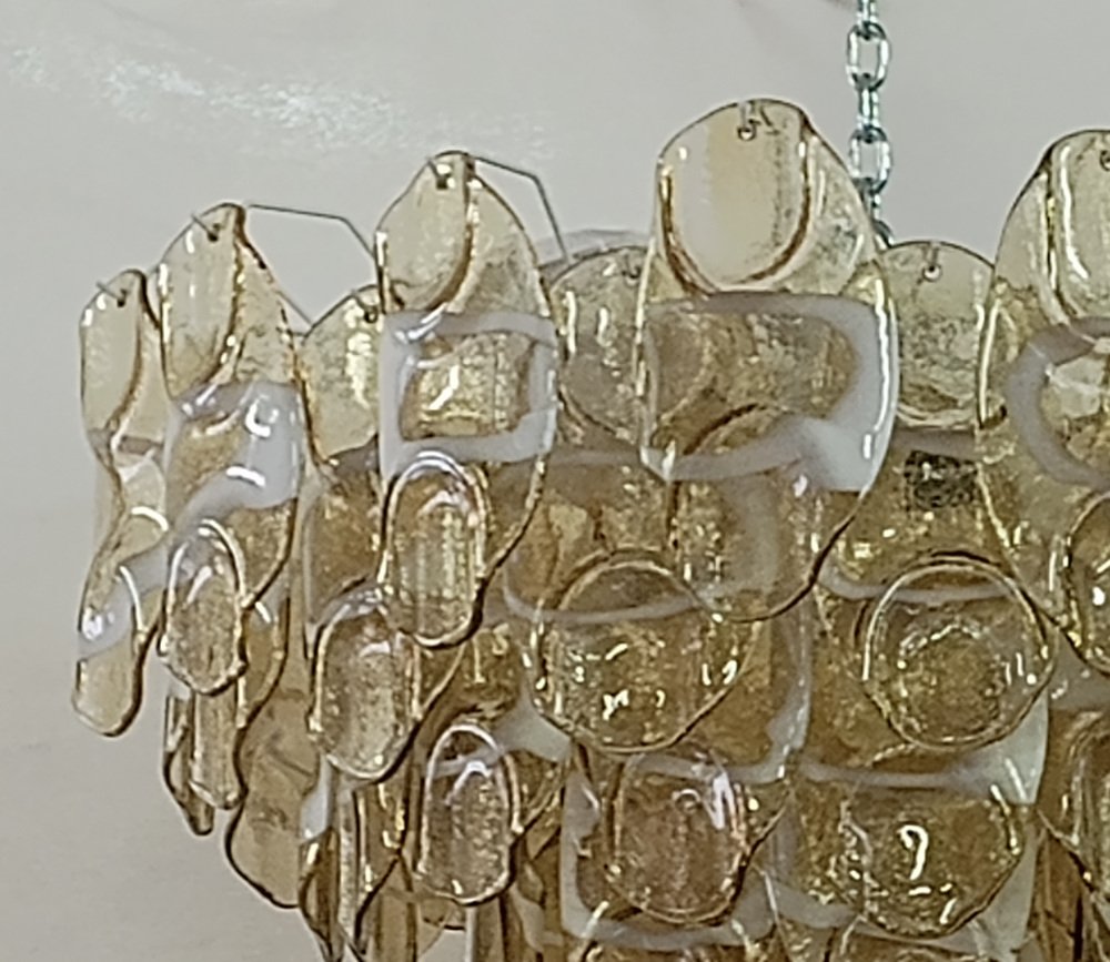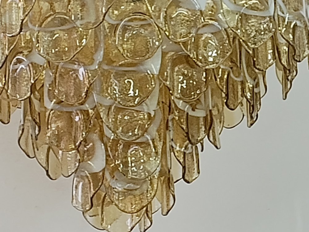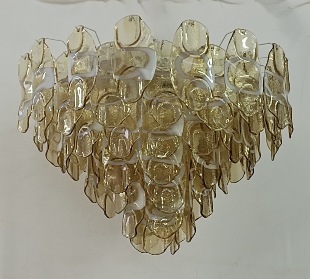 Mid-Century Amber and White Murano Glass Chandelier, 2000s
