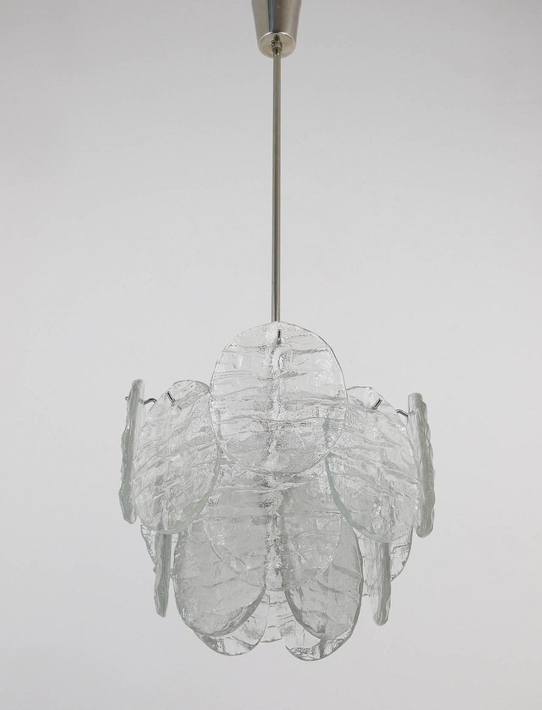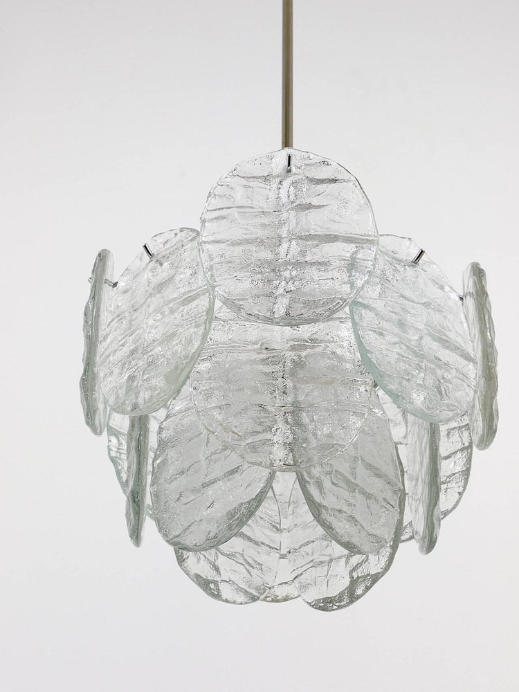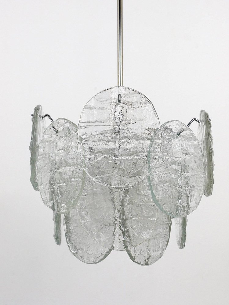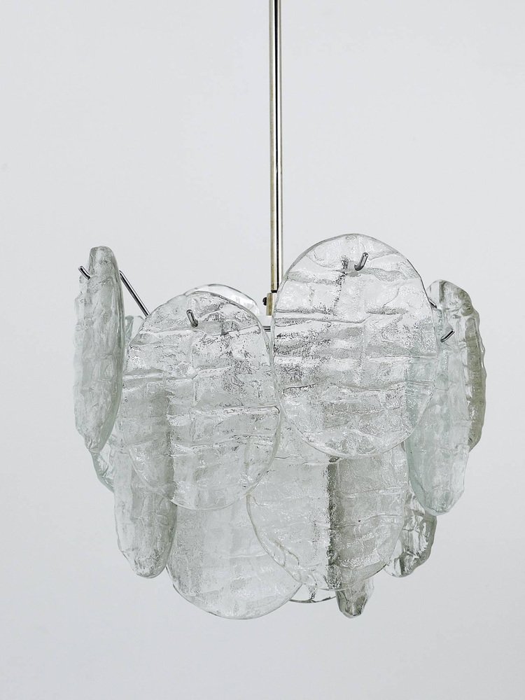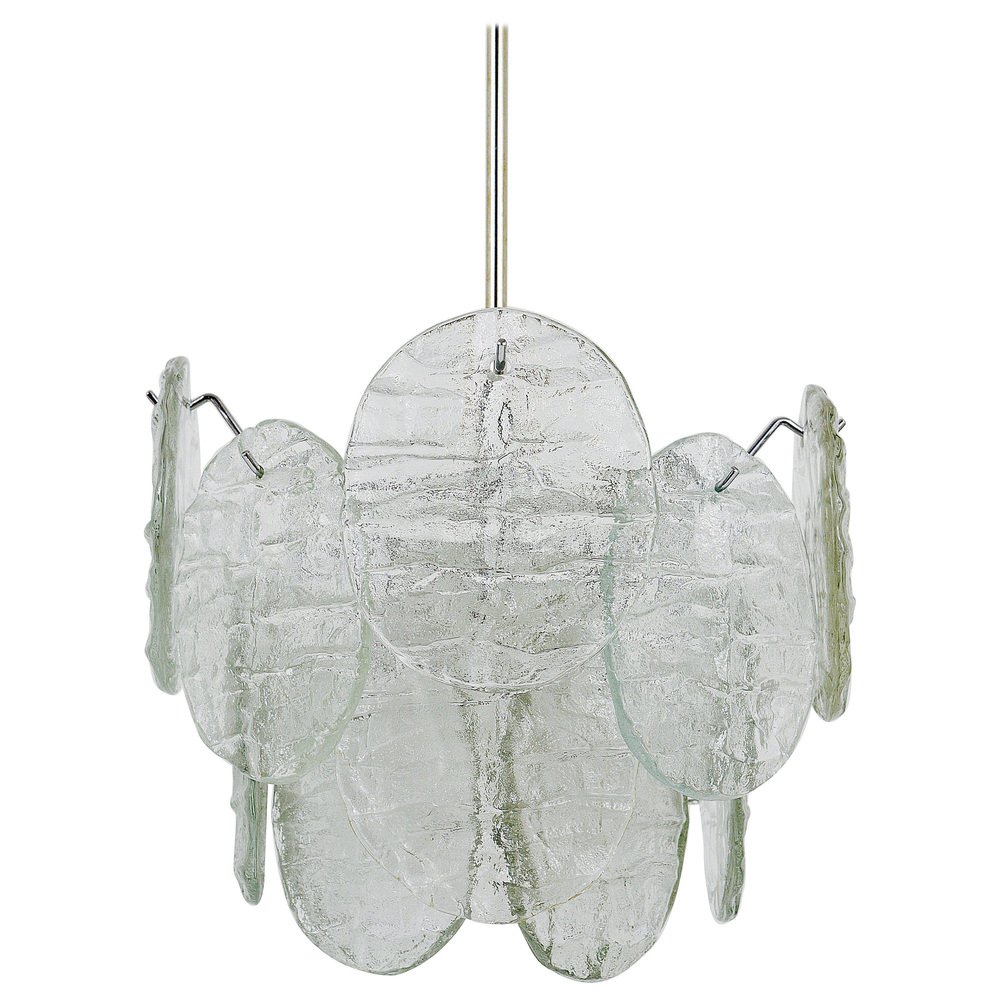 Mid-Century Blatt Ice Glass Disc Chandelier from Kalmar, Austria, 1960s