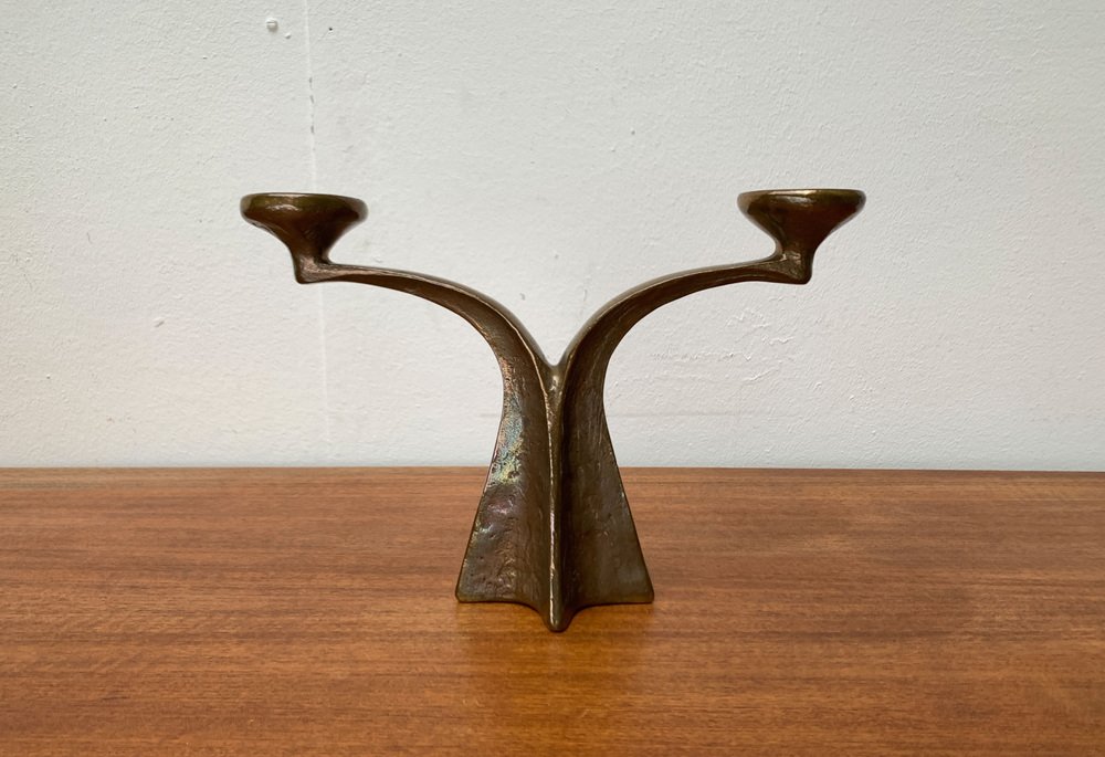 Mid-Century Brutalist German Bronze Candleholder from Harjes, 1960s
