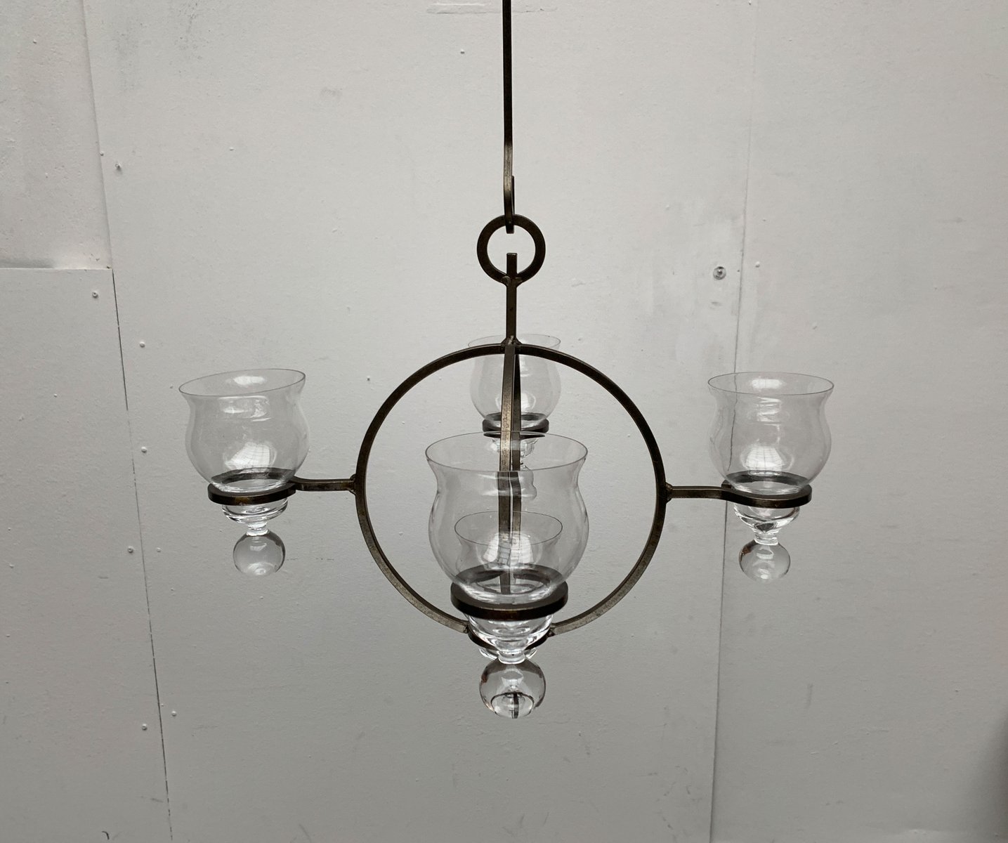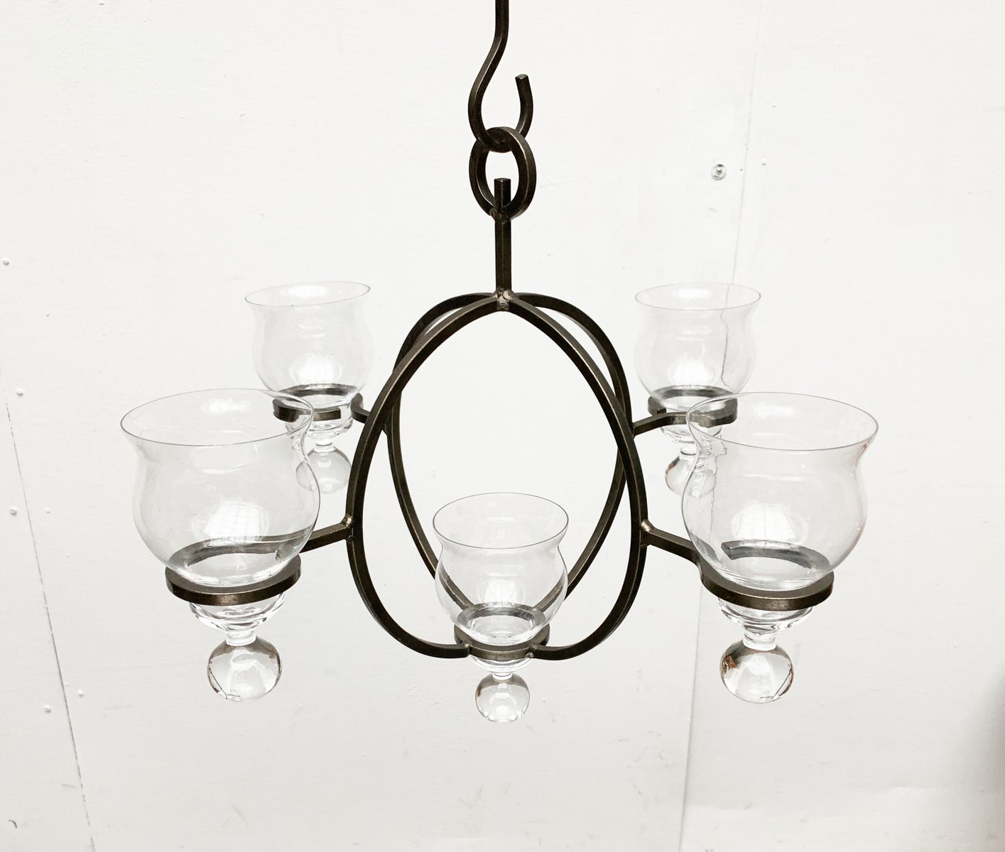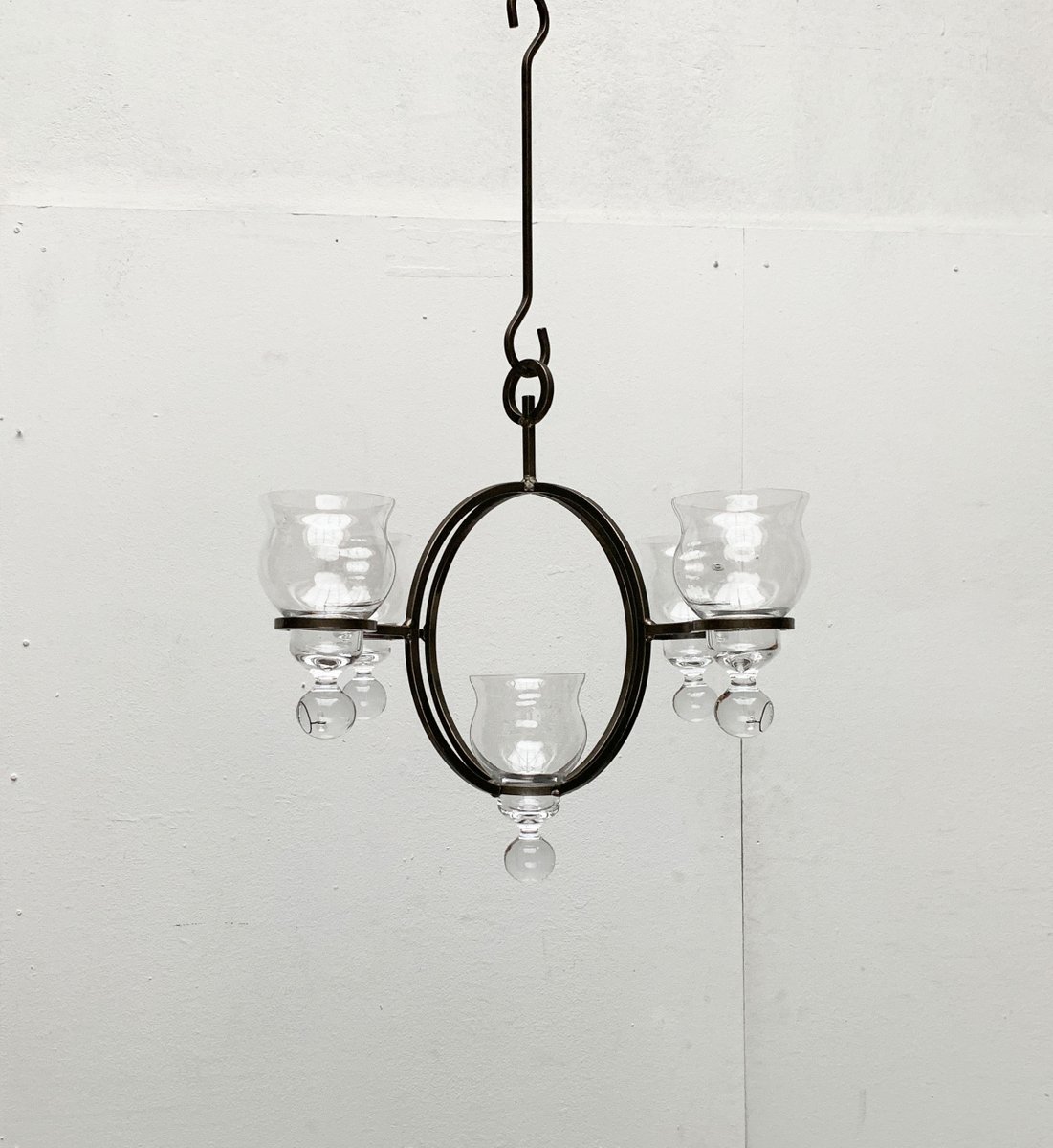 Mid-Century Danish Metal and Glass Candleholder Pendant, 1960s
