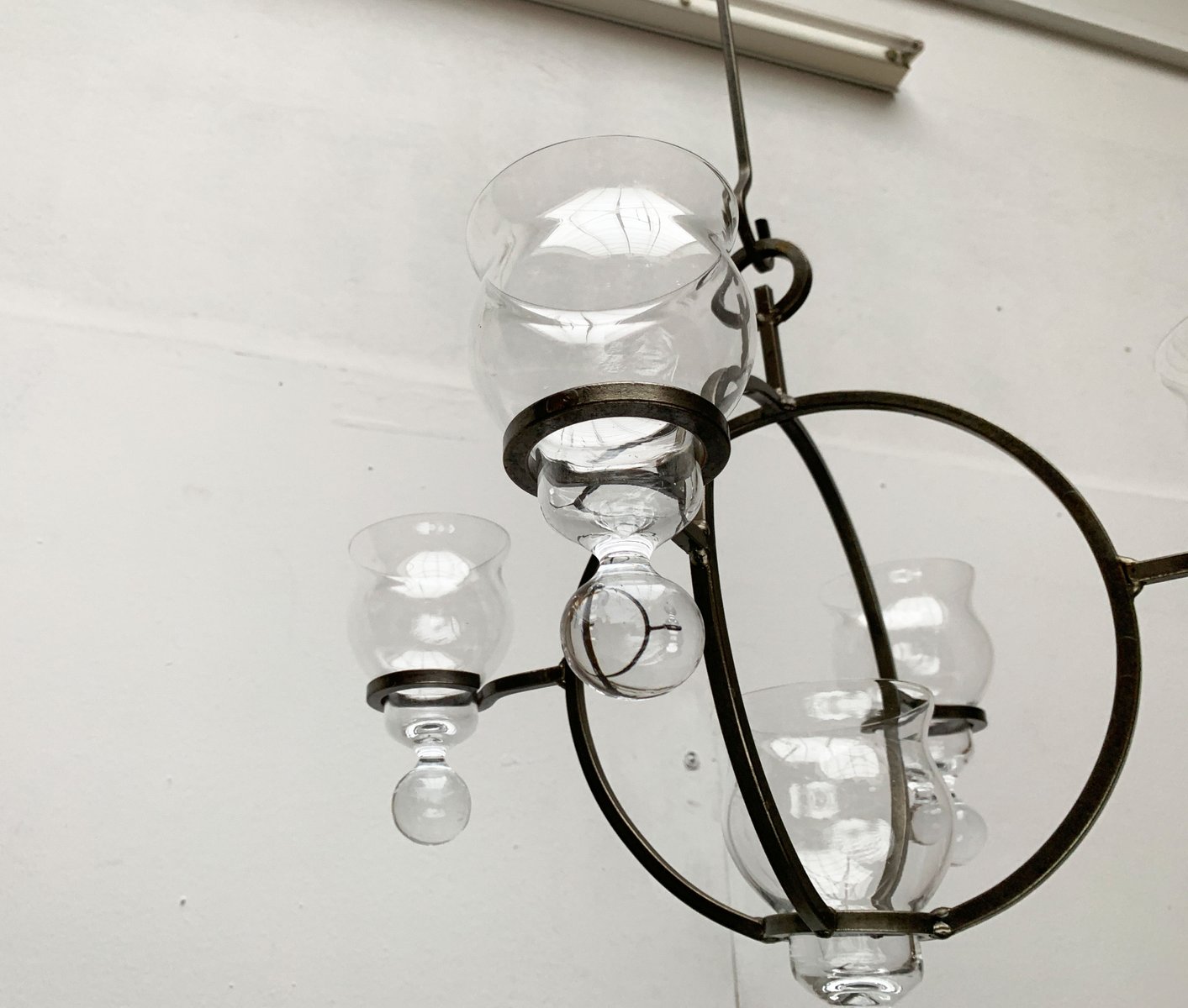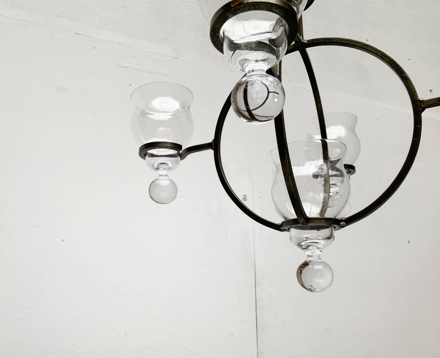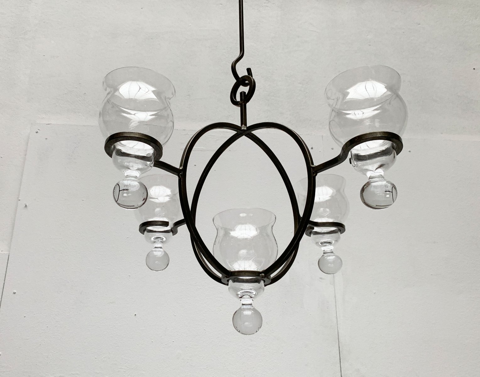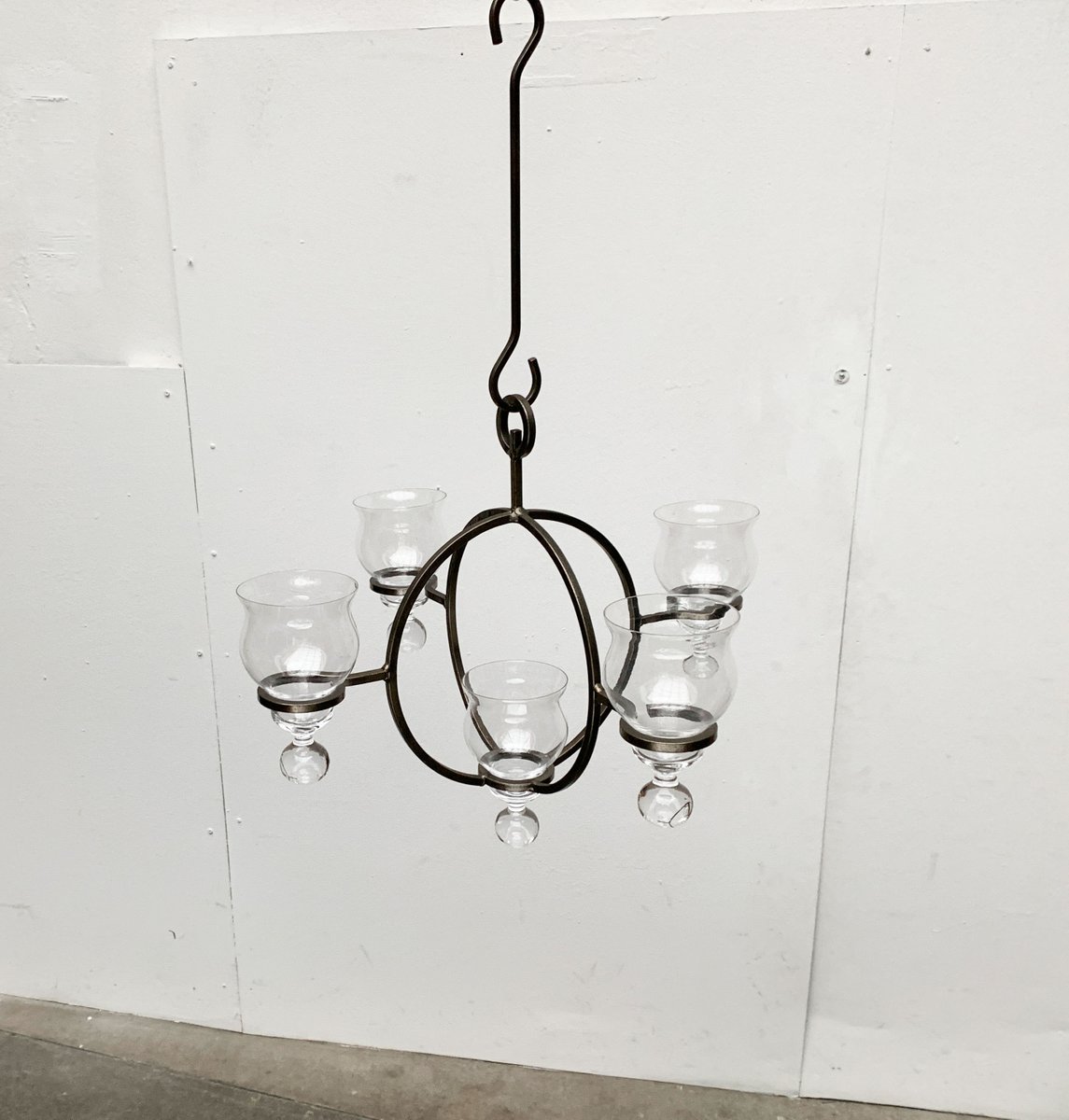 Mid-Century Danish Metal and Glass Candleholder Pendant, 1960s