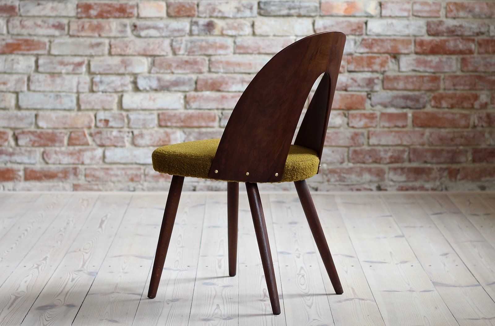 Mid-Century Dining Chairs in Kvadrat Honey-Olive Boucle by A. Šuman, Set of 4