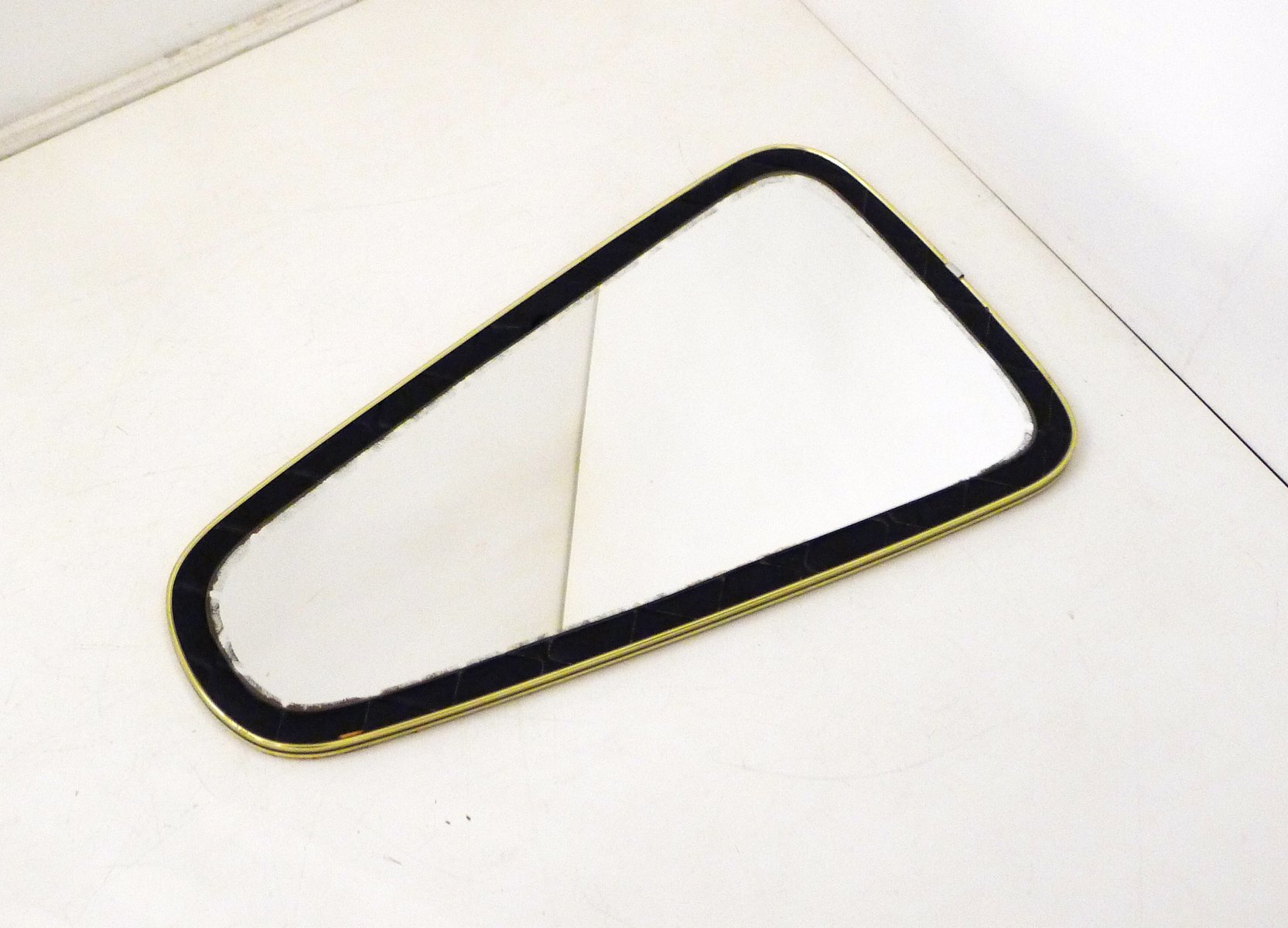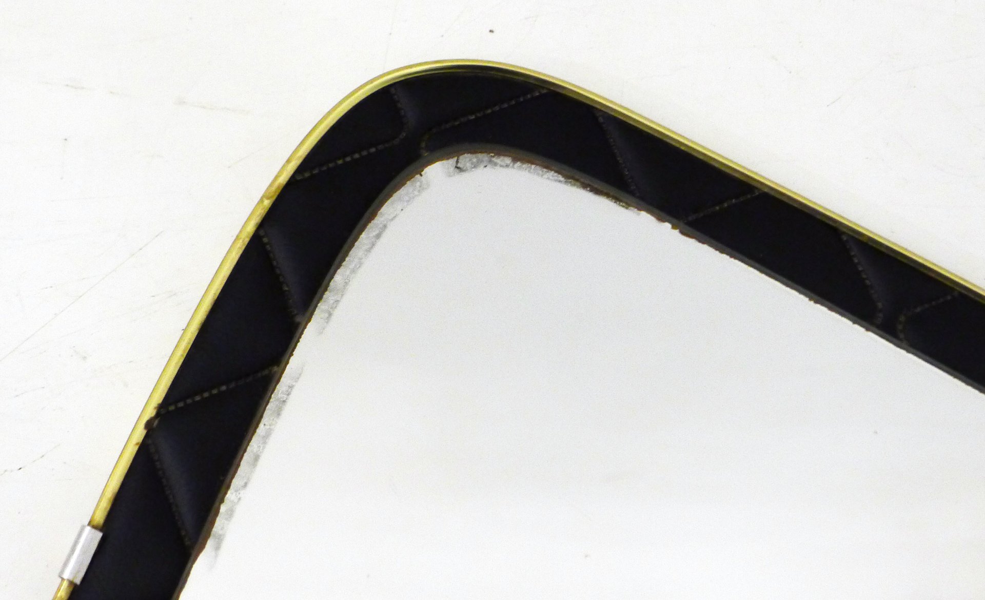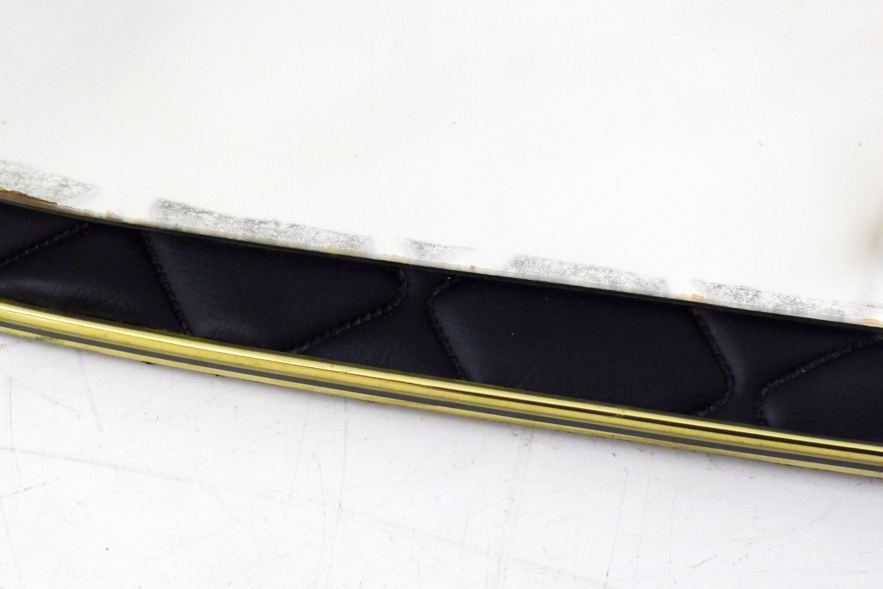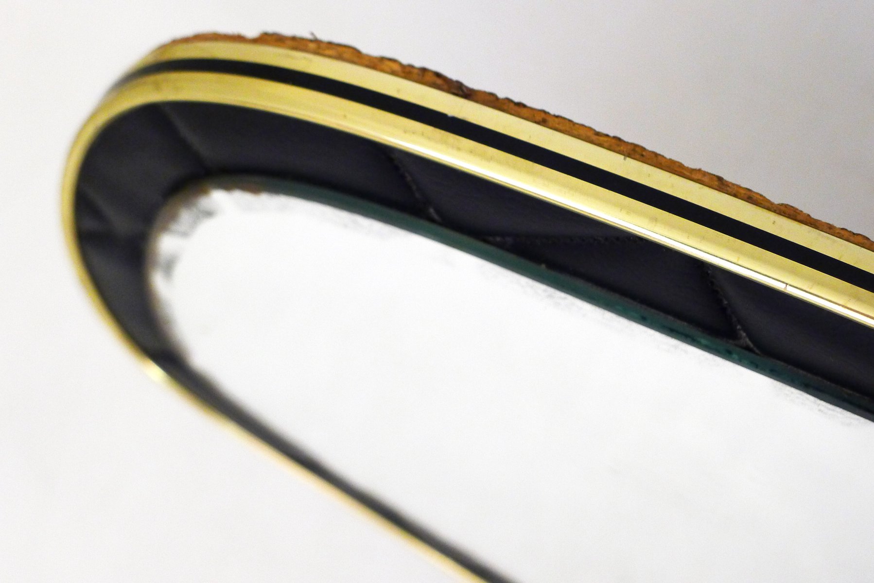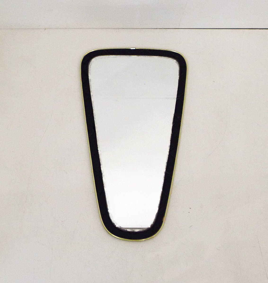 Mid-Century Free-Form Wall Mirror with Quilted Black Imitation Leather Frame & Gold Metal, 1950s