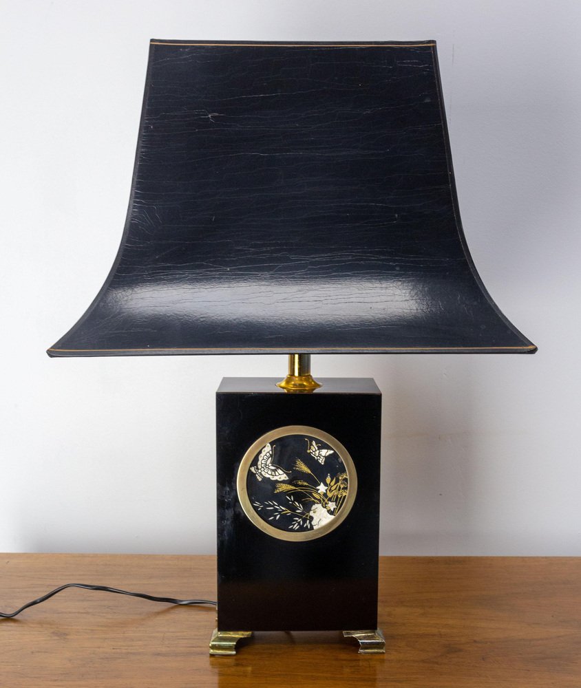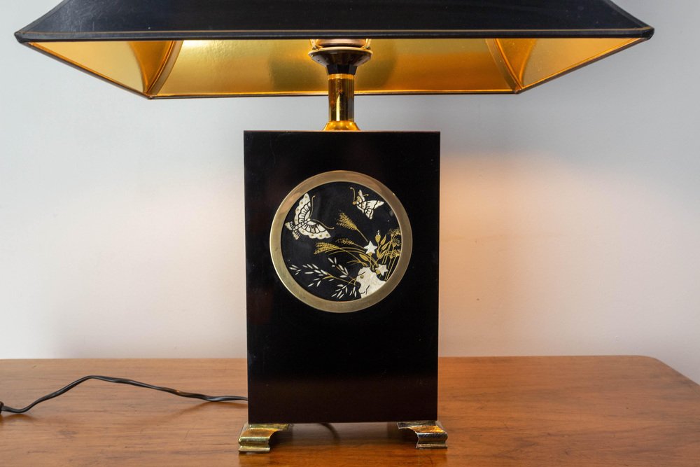 Mid-Century French Table Lamp in Black & Butterflies, 1970s