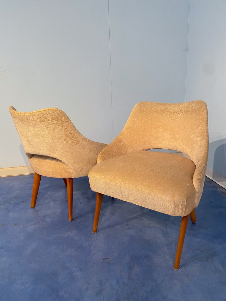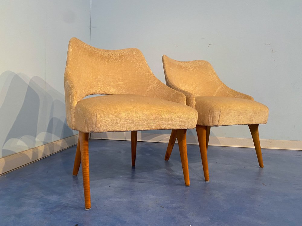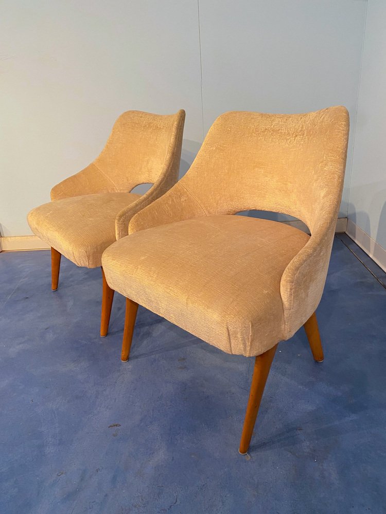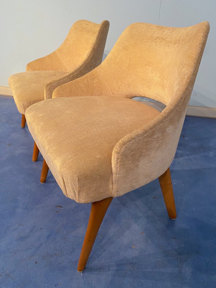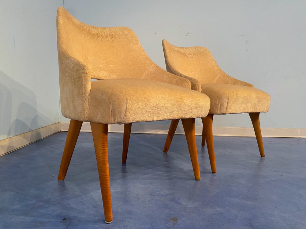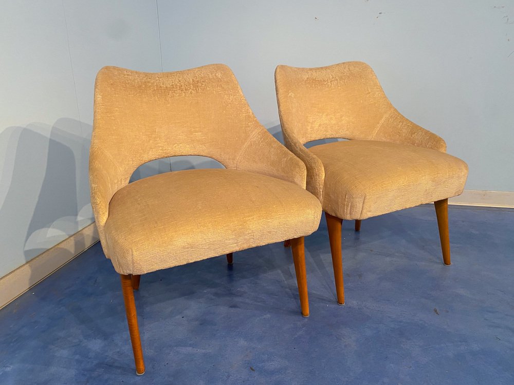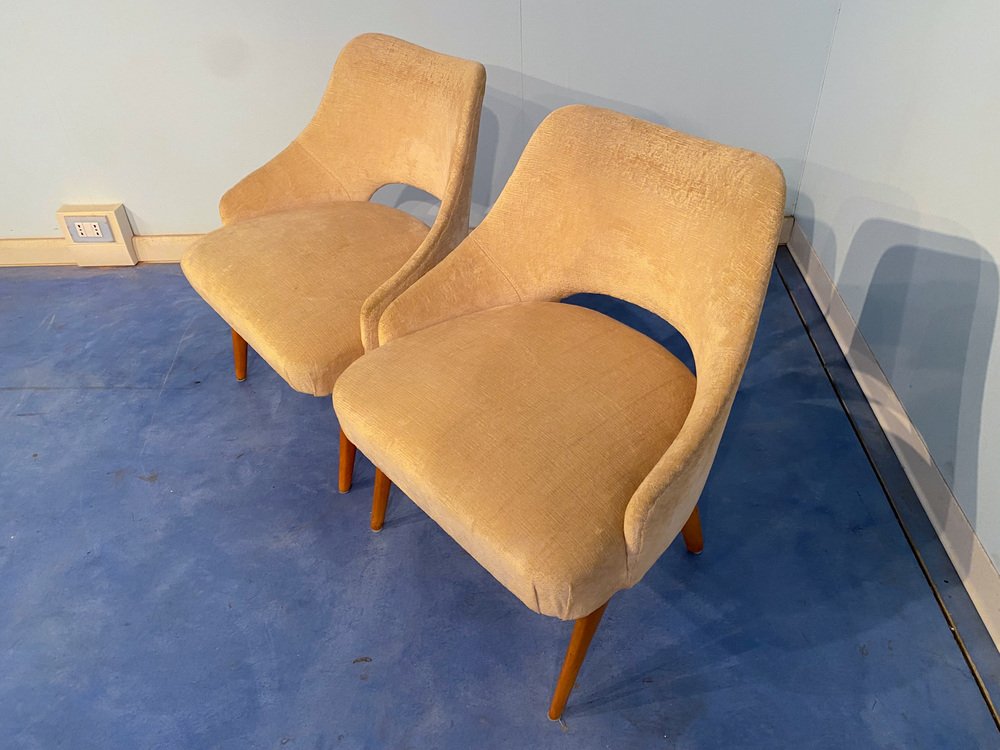 Mid-Century Italian Bedroom Chairs in Yellow Velvet by Vittorio Dassi, Set of 2
