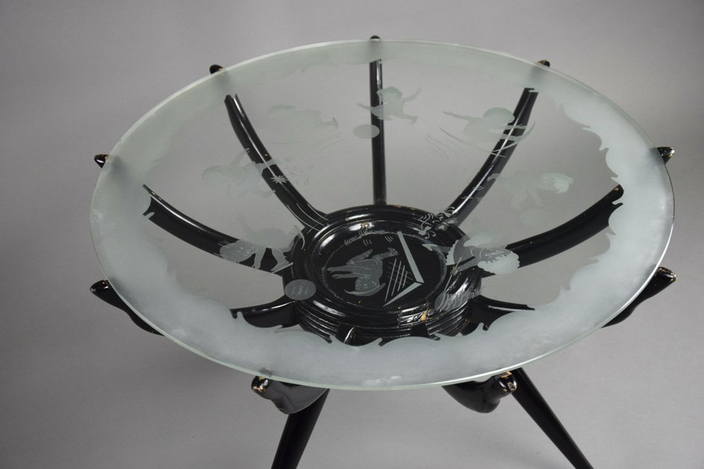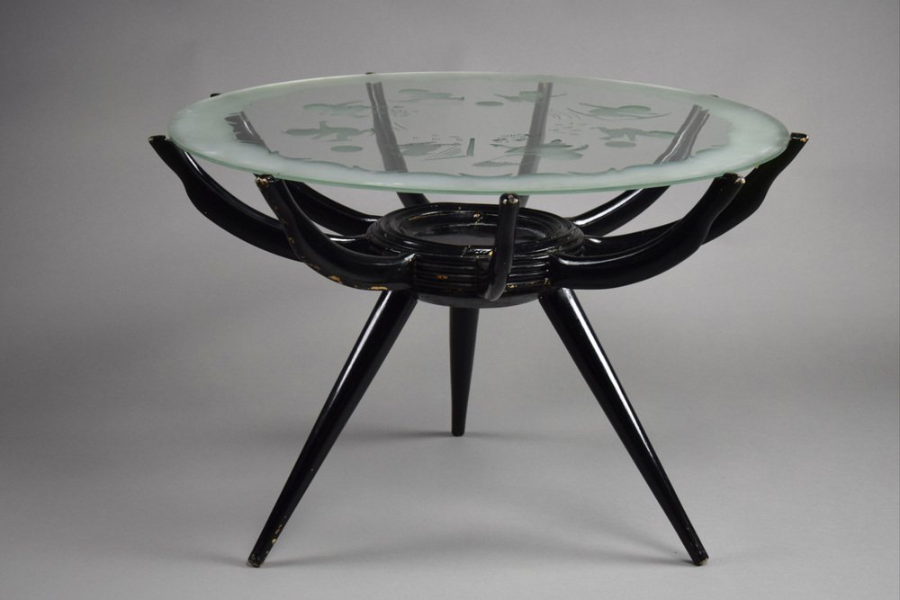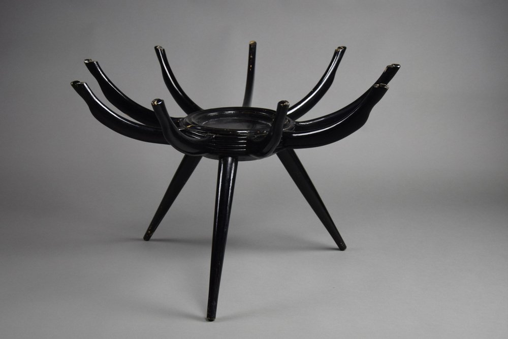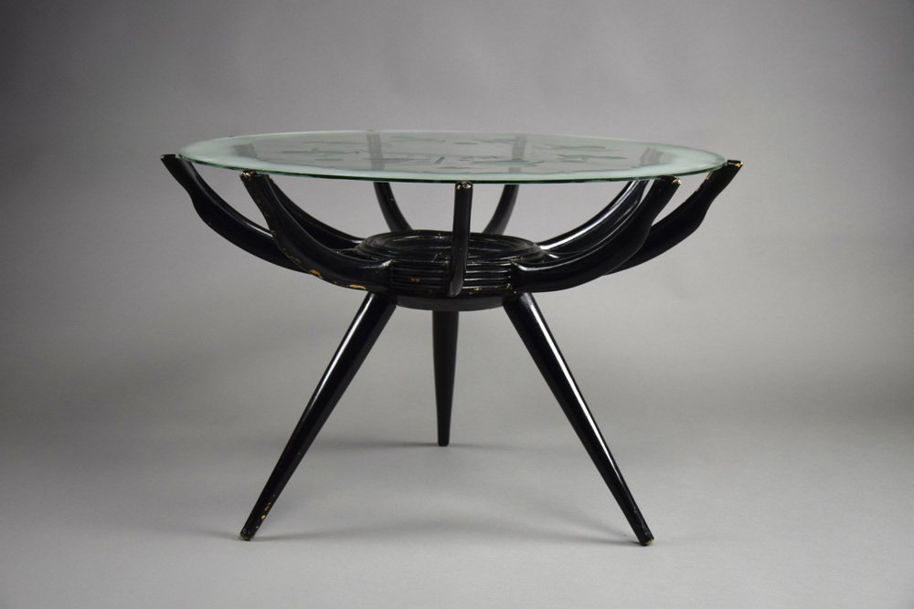 Mid-Century Italian Black Coffee Table with Spider Leg by Carlo De Carli, 1950